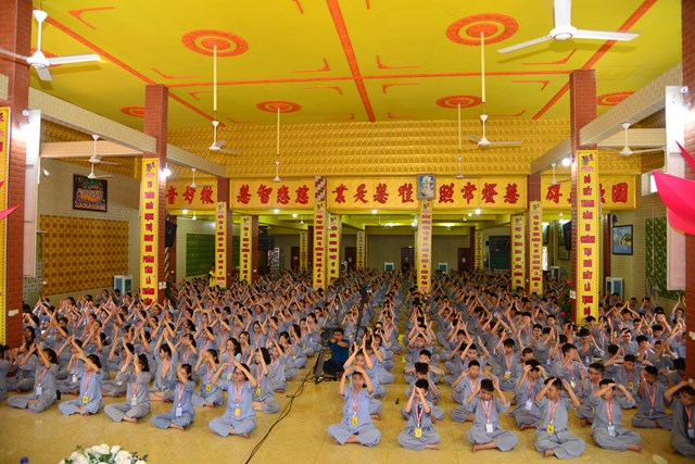 Hơn 600 khóa sinh thể hiện vũ khúc ” Khóa tu Bồ Đề Tâm” – Ca khúc chủ đạo của khóa tu do Nhạc sỹ Quý Luân sáng tác riêng cho khóa tu