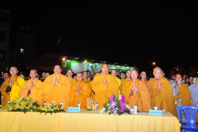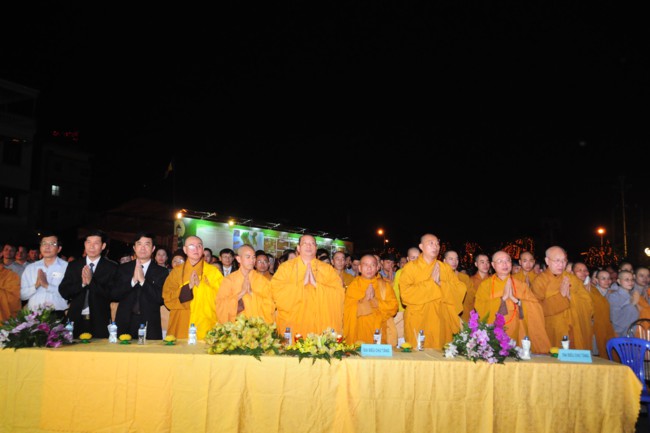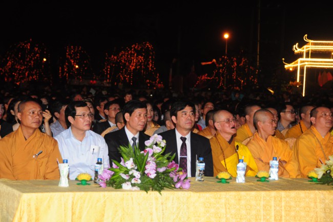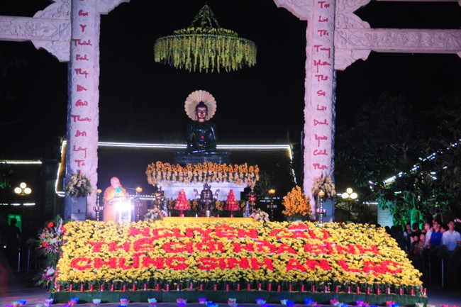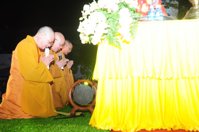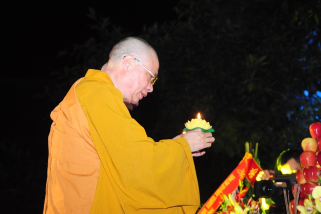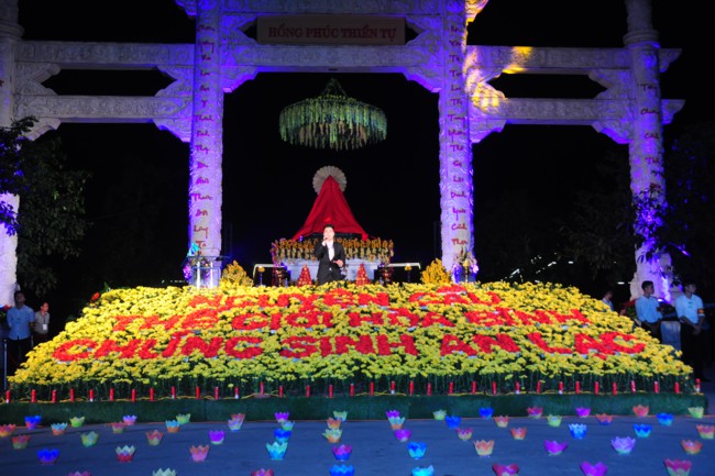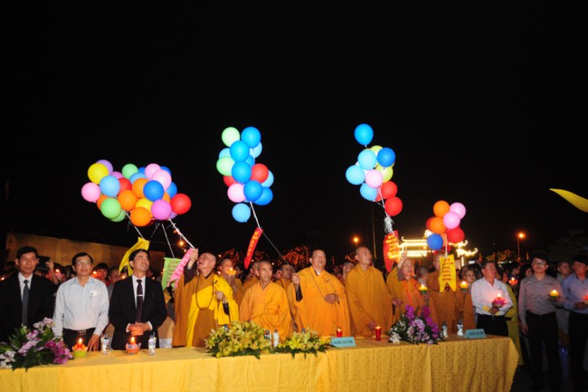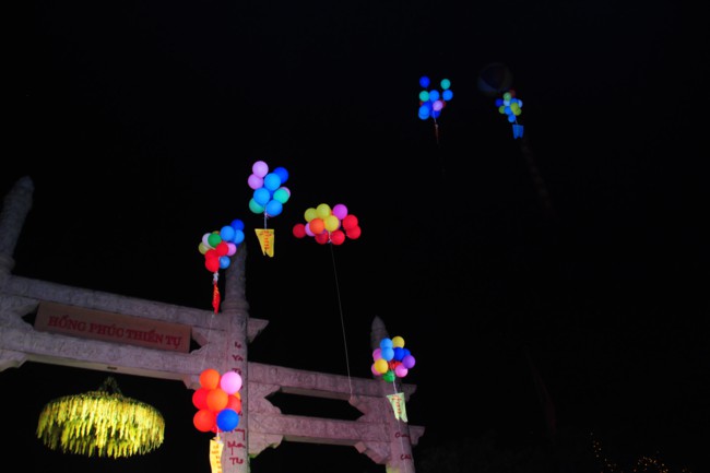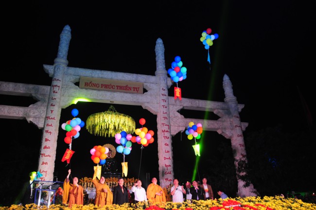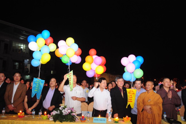 Trước khi kết thúc buổi lễ khai mạc, Chư tôn thiền đức Tăng Ni đã cùng quý quan khách chính quyền và Phật tử, nhân dân gần xa cử hành nghi lễ niêm hương bạch Phật, thắp đèn hoa đăng và thả bong bay cầu nguyện cho thế giới hòa bình, chúng sinh an lạc.