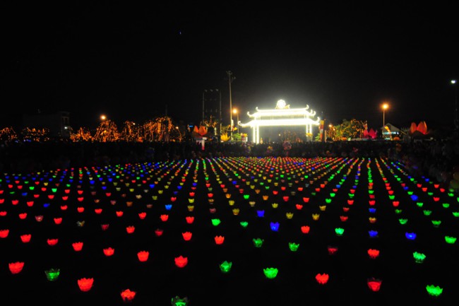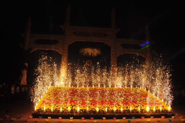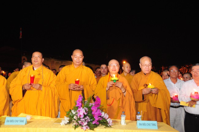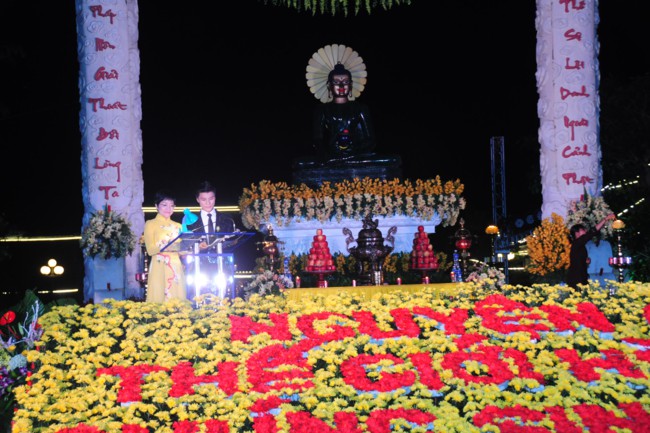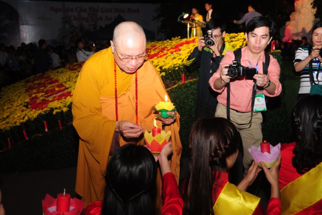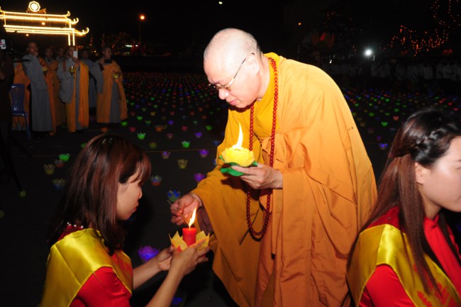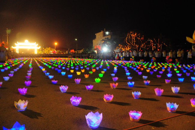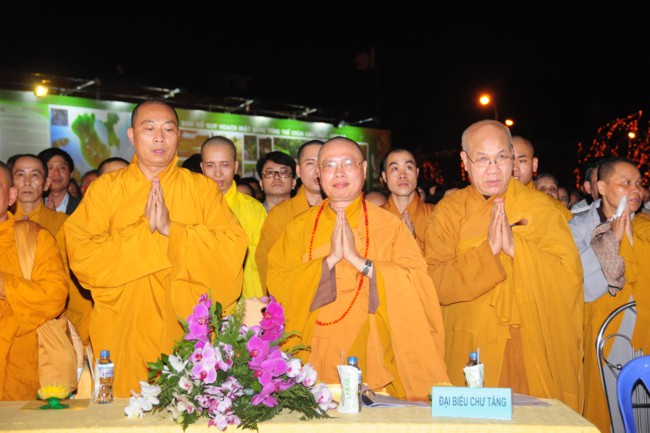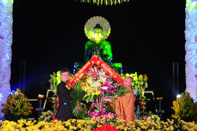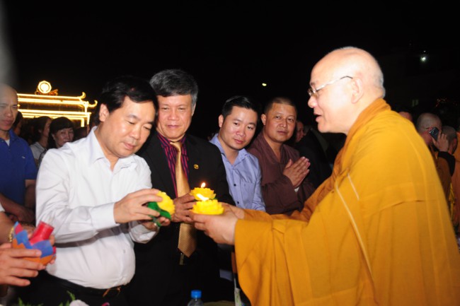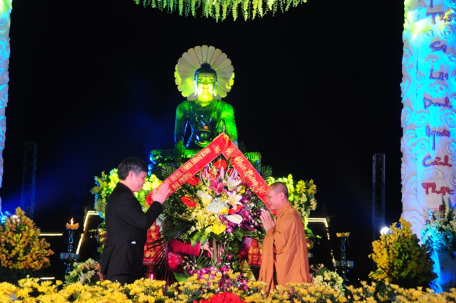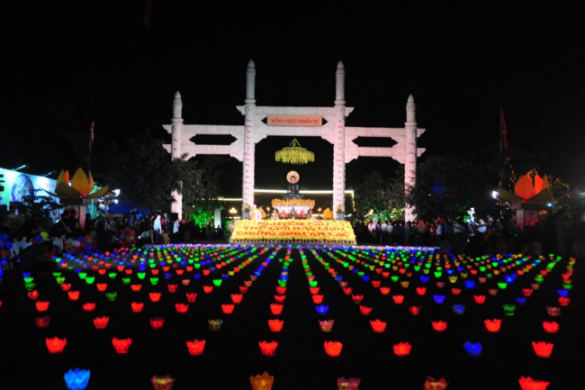 Trước khi kết thúc buổi lễ khai mạc, Chư tôn thiền đức Tăng Ni đã cùng quý quan khách chính quyền và Phật tử, nhân dân gần xa cử hành nghi lễ niêm hương bạch Phật, thắp đèn hoa đăng và thả bong bay cầu nguyện cho thế giới hòa bình, chúng sinh an lạc.