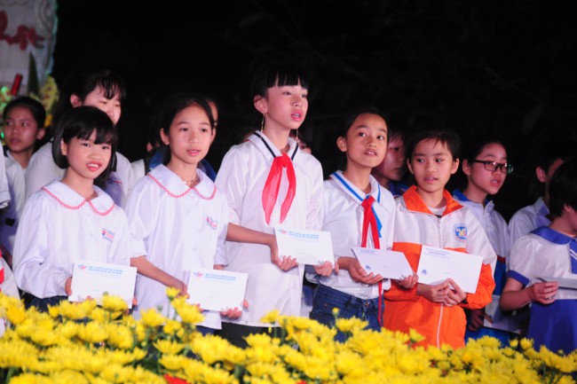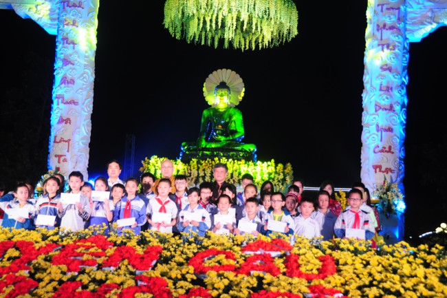 Nhân dịp này, Ban trị sự GHPGVN thành phố Hải Phòng phối hợp cùng với chư tăng chùa Hồng Phúc đã trao 100 phần quà cho các cháu học sinh nghèo vượt khó của thành phố Hải Phòng, mỗi phần quà trị giá 500 ngàn đồng và 10 suất học bổng toàn phần trong suốt quá trình học tập của 10 cháu học sinh có hoàn cảnh khó khăn trên địa bàn quận Kiến An. Thay mặt cho BTS GHPGVN thành phố Hải Phòng. HT. Thích Quảng Tùng và TT. Thích Tục Khang đã lên trao tặng cho các cháu học sinh những phần quà đầy ý nghĩa nhân buổi lễ trọng đại này.