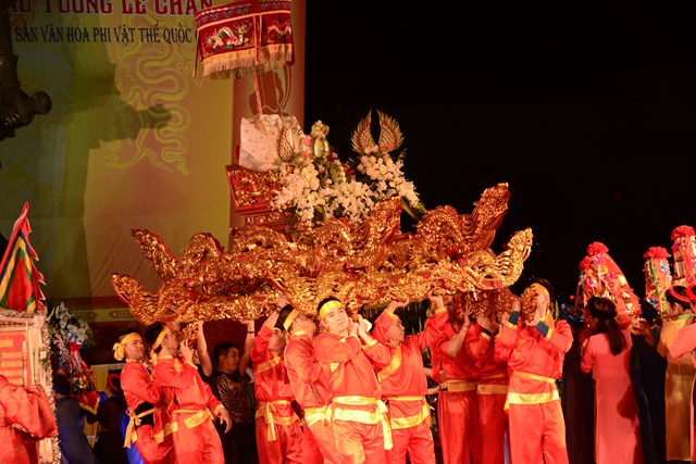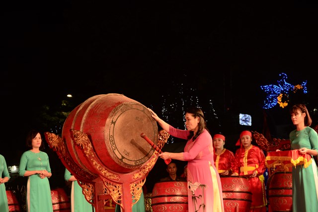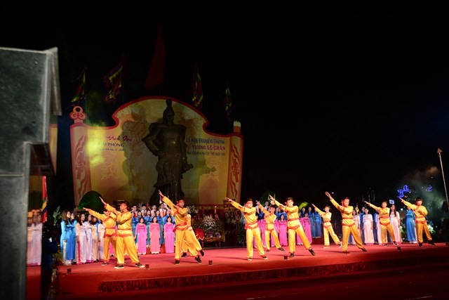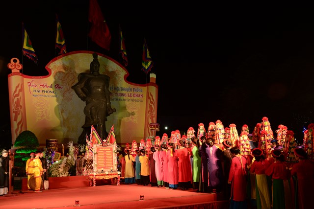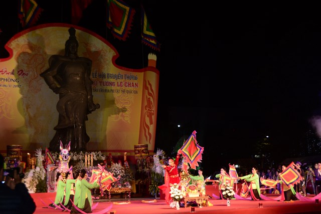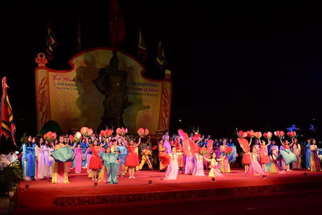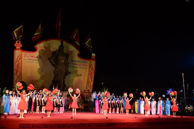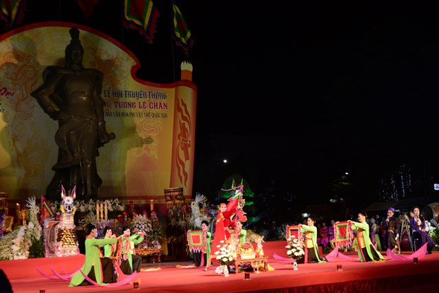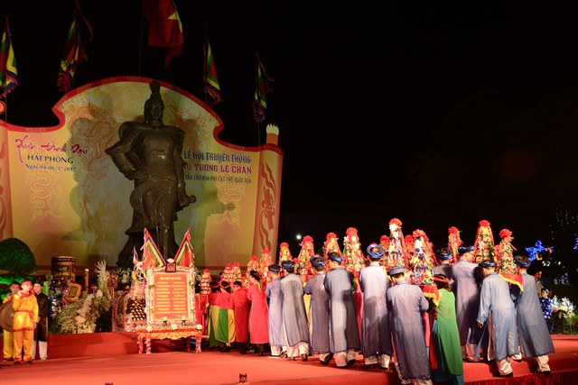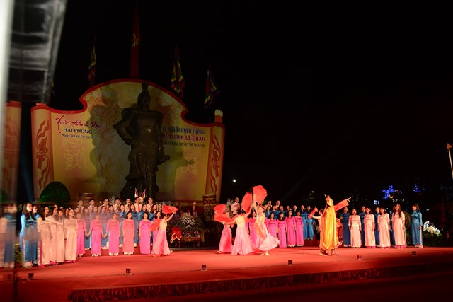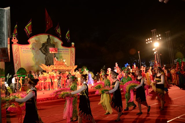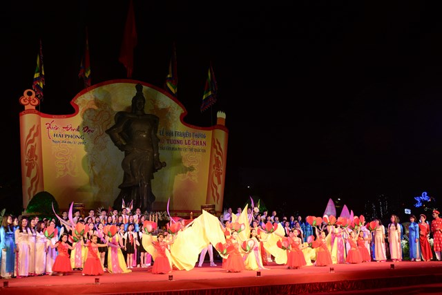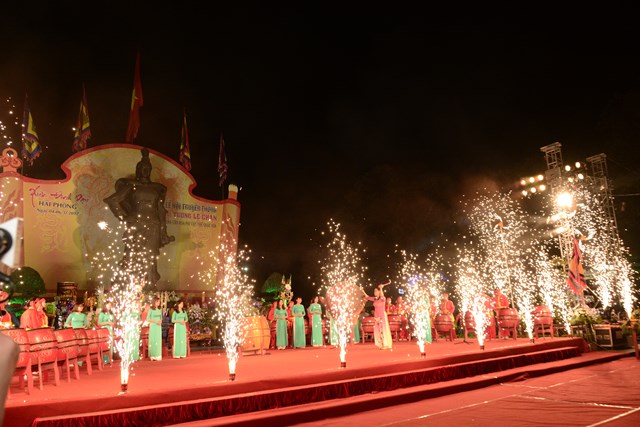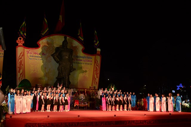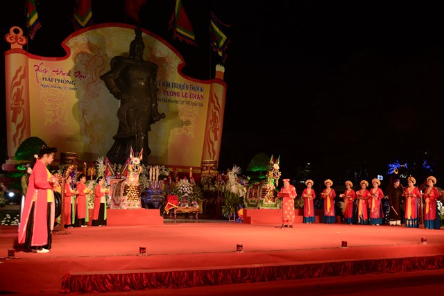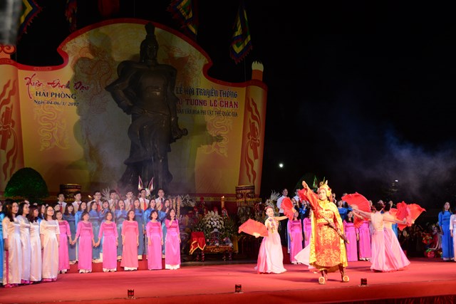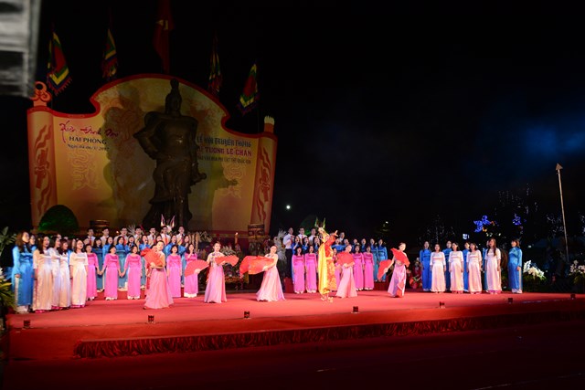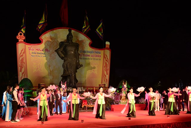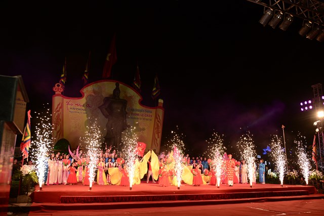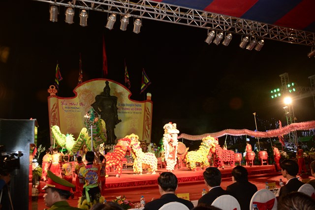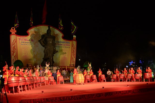 Trước khi kết thúc buổi lễ, bà Đỗ Thanh Lê – Thành ủy viên, bí thư Quận ủy quận Lê Chân lên đánh trống khai hội lễ hội truyền thống nữ tưỡng Lê Chân 2017. Kết thúc buổi lễ khai mạc là chương trình nghệ thuật đặc sắc chào mừng lễ hội Nữ tướng Lê Chân năm 2017.