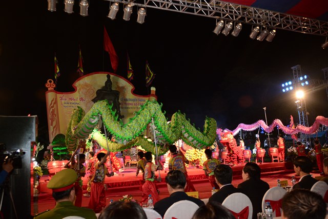 Năm nay, buổi lễ khai mạc đã được diễn ra với quy mô lớn nhất từ trước tới nay. Đặc biệt, trong buổi lễ khai mạc đã có màn biểu diễn tái hiện lại hình ảnh của Nữ tướng Lê Chân do đoàn chèo Hải Phòng trình diễn và màn trống khai hội rất độc đáo và hoành tráng cùng với đó là lời chúc văn rất hùng hồn, đanh thép do ông Phạm Tiến Du – Phó chủ tịch UNBD quận Lê Chân lên tuyên đọc theo nghi thức truyền thống.