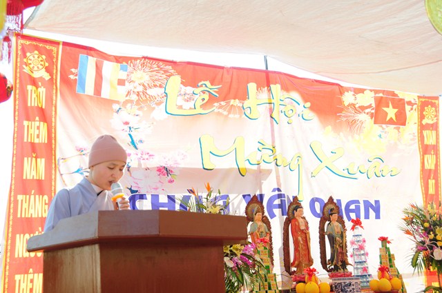 Mở đầu lễ hội xuân, thay mặt cho BTC lễ hội, Sư Cô Thích Diệu Hướng đã lên phát biểu khai mạc lễ hội xuân chùa Vân Quan năm Bính Thân – 2016, trong bài phát biểu khai mạc, Sư cô đã nêu lên tầm quan trọng của lễ hội xuân, với mục đích giúp cho các Phật tử, nhân dân địa phương có một sân chơi bổ ích, biết hướng thượng, hướng thiện, bỏ giữ, làm lành, tu học theo đúng chính pháp, đúng lời Phật dạy.