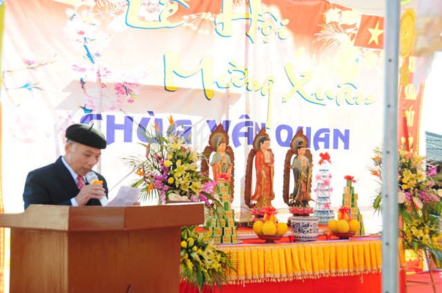 Tiếp đó, đại diện cho chính quyền thôn Vân Quan đã lên công bố nội dung các trò chơi dân gian năm nay cũng như giải thưởng của các trò chơi và đánh trống khai mạc lễ hội xuân chùa Vân Quan năm 2016 trong không khí vui tươi, ấm tình đạo vị.