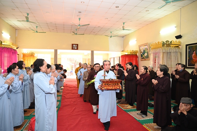 Đại diện Phật tử Hoàng Hoan (PD: Pháp Tâm) đại diện đạo tràng Pháp Hoa chùa Hào Quang dâng lời tác bạch thỉnh Giảng sư