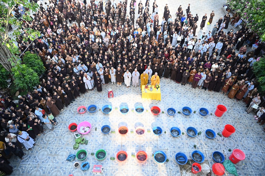 Chư tôn đức là Phật tử thực hiện nghi thức phóng sinh nhân mùa Vu lan – Báo hiếu