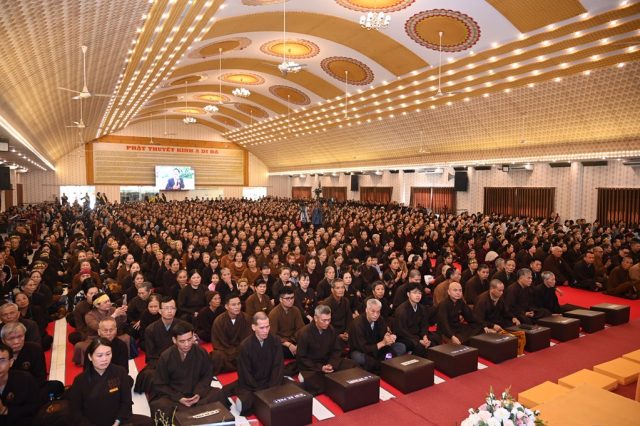Phật tử vân tập về giảng đường tầng 1 tham dự đại lễ