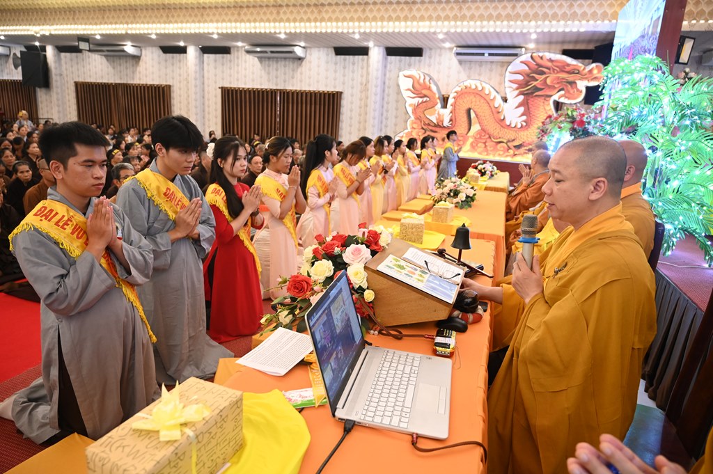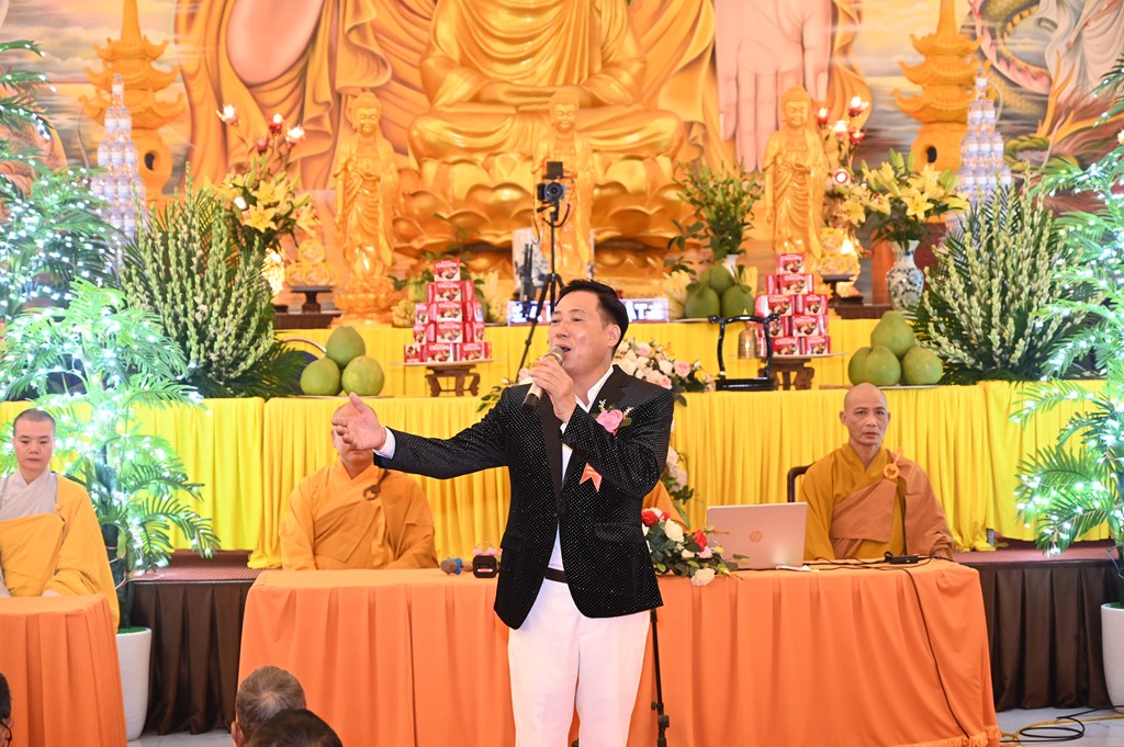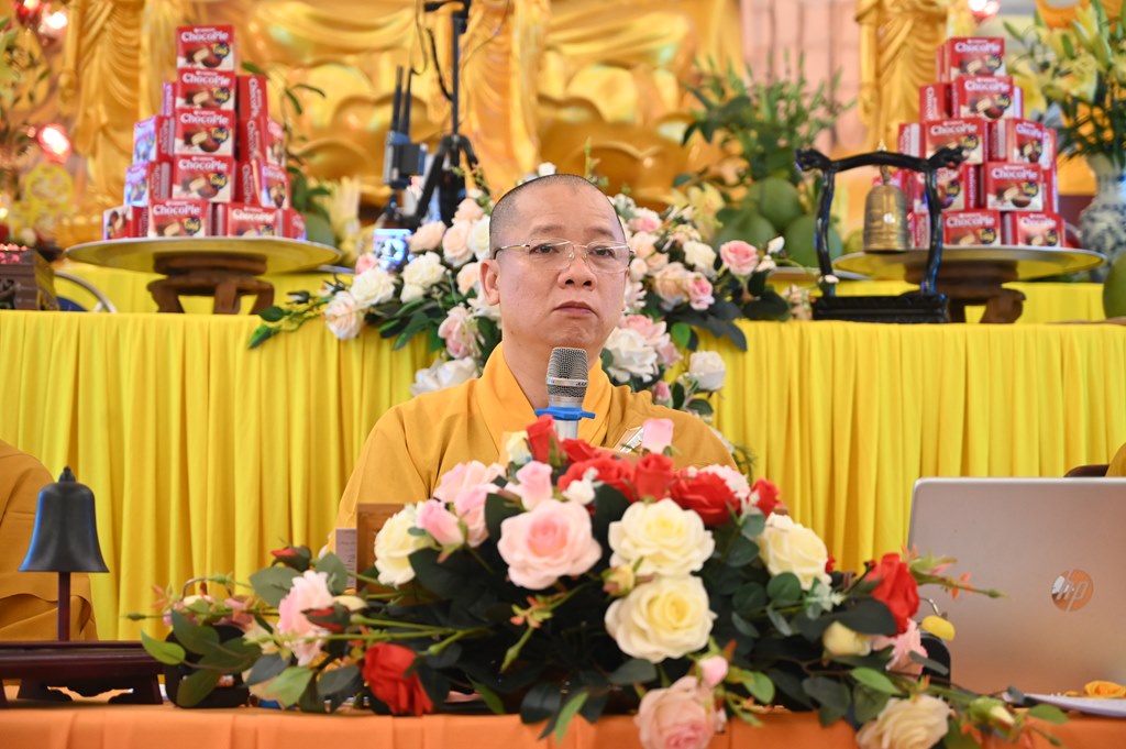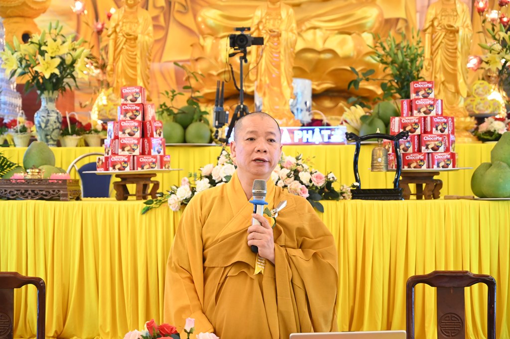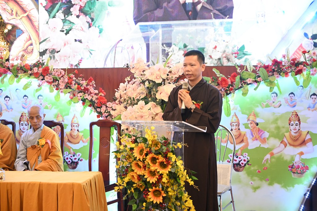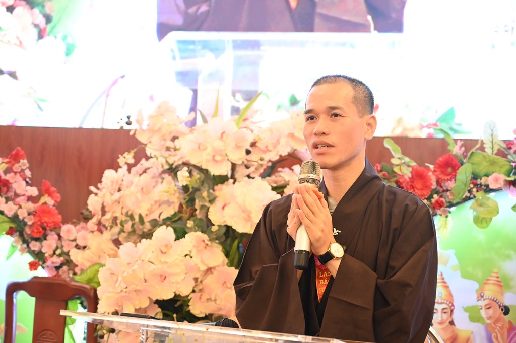 Đại đức Thích Giác Hảo ban đạo từ và chia sẻ tại buổi lễ