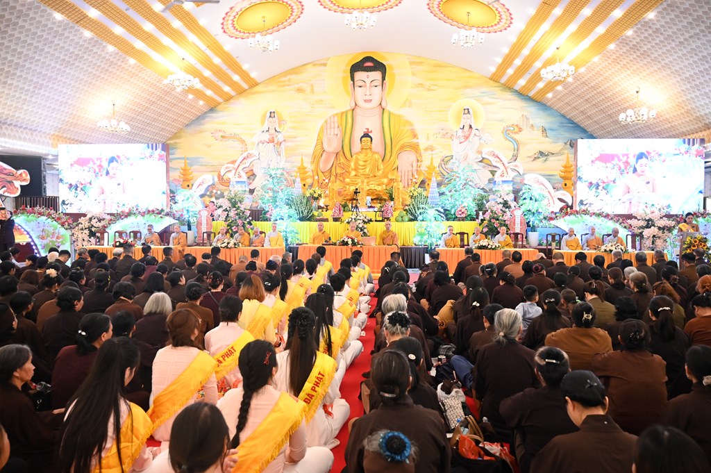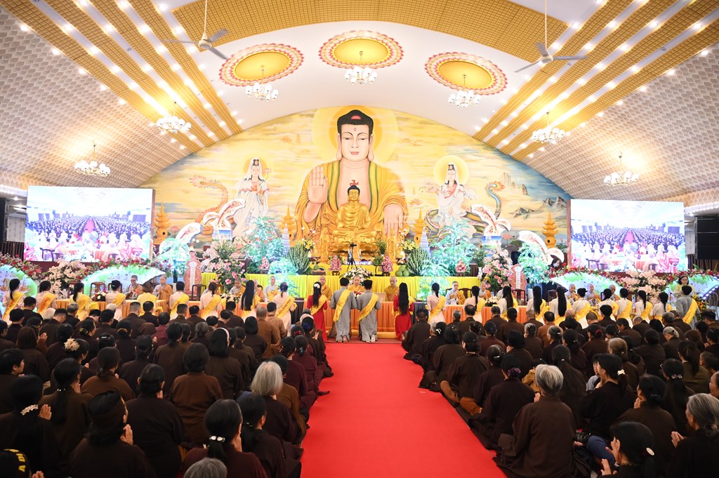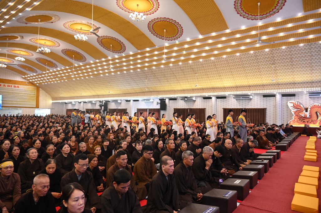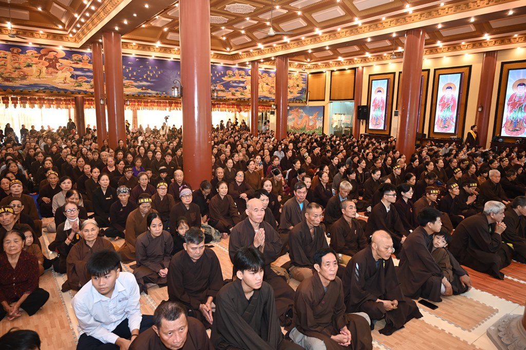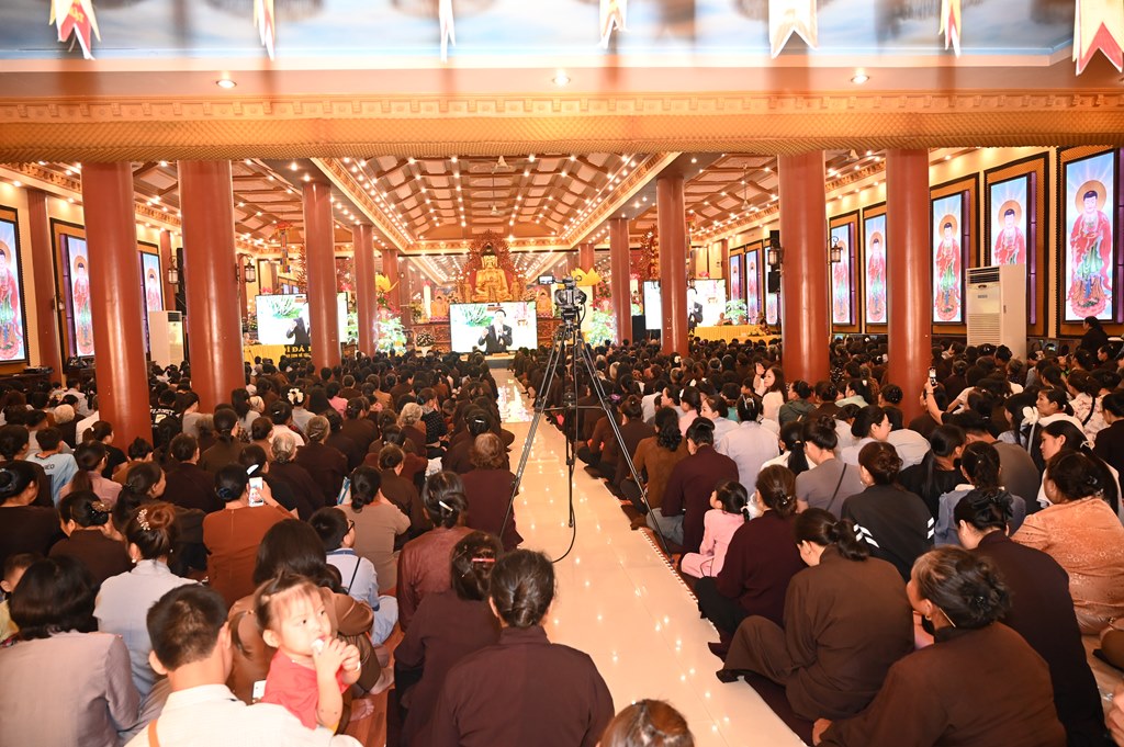 Phật tử vân tập tại giảng đường tầng 2 chùa An Hồng tham dự đại lễ