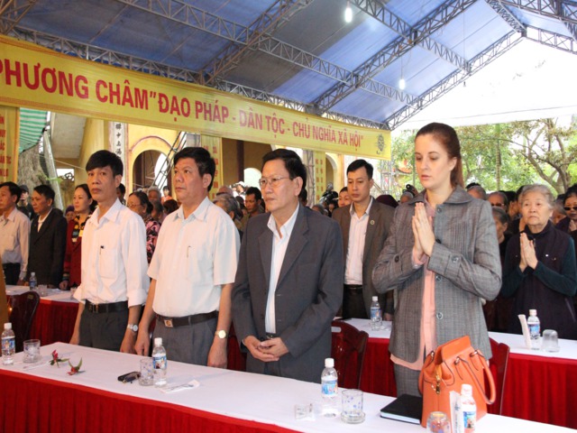 Về phía chính quyền có ông Phạm Quốc Phòng – Phó Giám đốc Sở Nội vụ – Trưởng BTG Thành ủy; ông Nguyễn Văn Thông – Phó Bí thư huyện ủy – Chủ tịch UBND huyện An Lão; Bà Ngô Thị Thanh Thủy – Bí thư Đảng ủy xã, đại diện lãnh đạo các cơ quan ban ngành HĐND, UBND, MTTQ xã Bát Trang, huyện An Lão, Tp.Hải Phòng cùng đại diện Quỹ Thiện Tâm – Tập đoàn Vingroup, Công ty Hoàng Long.