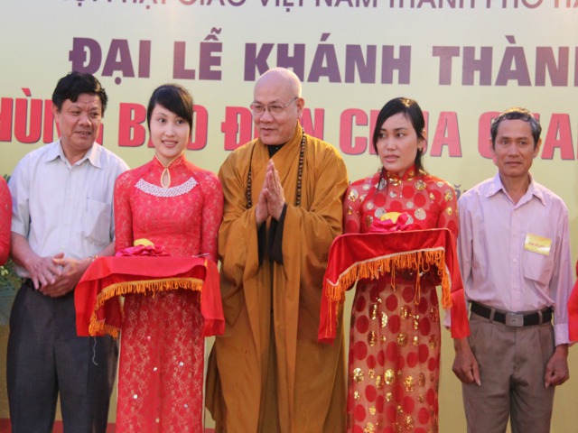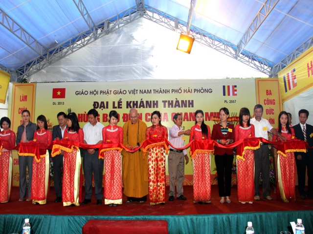 Cuối buổi lễ chư Tôn đức cùng quý vị đại biểu cắt băng khánh thành và dâng hương tại chính điện Tam Bảo chùa Quang Minh.
