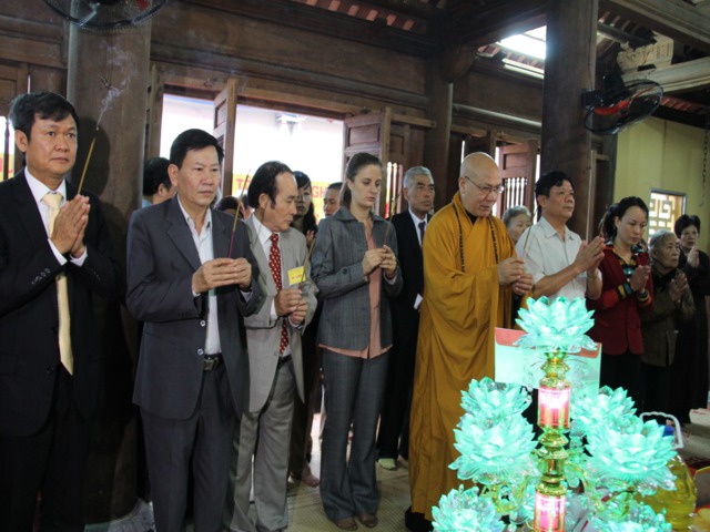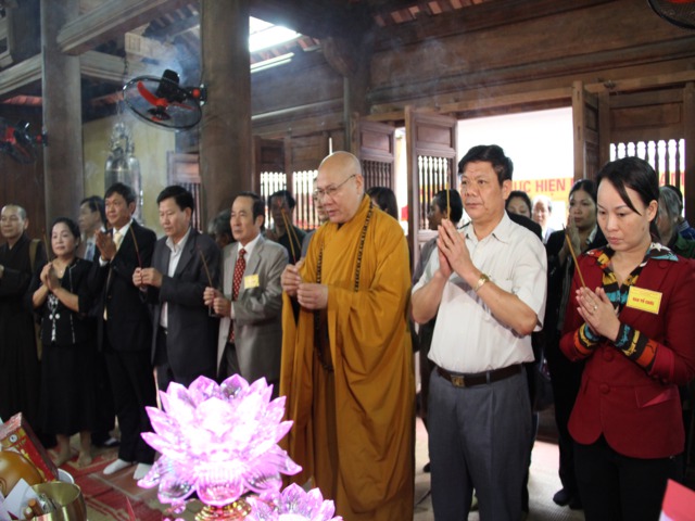 Tại buổi lễ ông Bùi Văn Chiến – Bí thư chi bộ thôn Thượng Trang phát biểu khai mạc. Chùa Quang Minh là 1 trong 7 ngôi chùa cổ xã Bát Trang, được chư Tổ và nhân dân xây dựng từ thời Hậu Lê, là cơ sở tín ngưỡng tâm linh, giáo dục đạo đức Phật giáo cho những người con Phật và dân làng địa phương. Trải qua diễn biến của thời tiết, biến thiên lịch sử, phong hóa của thời gian chùa đã xuống cấp nghiêm trọng.