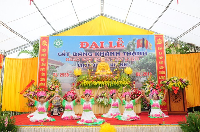 Trước khi kết thúc buổi lễ, Chư tôn đức Tăng Ni, lãnh đạo địa phương đã cắt băng khánh thành ngôi Đại hùng bảo điện chùa Quang Khánh và làm lễ dâng hương tại chính điện của chùa trong niềm hoan hỷ, ấm tình đạo vị.