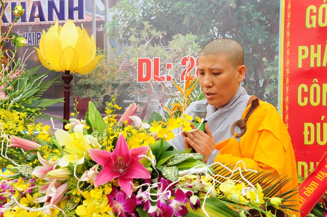 Tại buổi lễ, HT. Thích Quảng Tùng đã ban đạo từ tán thán công đức của SC. Thích Diệu Thanh, các Phật tử đã đóng góp tịnh tài, tịnh vật cho việc xây dựng chùa để bà con Phật tử từ nay có nơi để sinh hoạt tín ngưỡng văn hóa tâm linh. Đồng thời Hòa thượng cũng đã nhắc cho bà con Phật tử hiểu được ý nghĩa của việc xây chùa cũng như vai trò của ngôi chùa đối với sự phát triển của xã hội bởi phương châm của GHPGVN đó là Phật giáo luôn đồng hành cùng dân tộc.