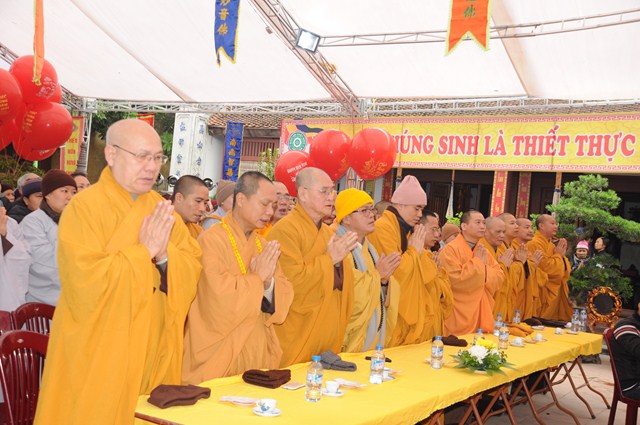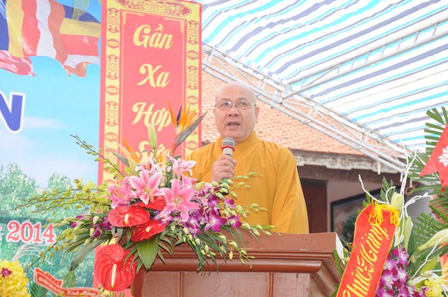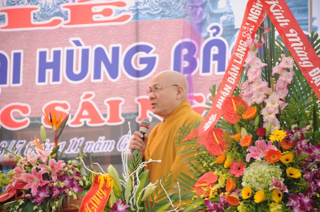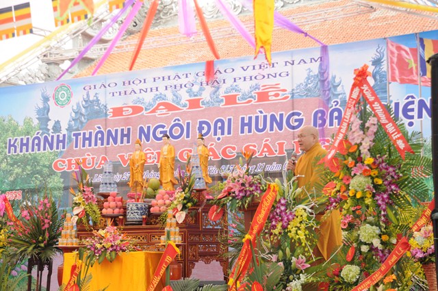 Nhân dịp này, HT. Thích Quảng Tùng – Phó chủ tịch HĐTS TƯ GHPGVN, trưởng BTS GHPGVN Tp. Hải Phòng đã ban đạo từ tán thán công đức của Đại đức trụ trì cùng các Phật tử đã đóng góp tịnh tài, tịnh vật cho công việc kiến thiết, tu bổ, xây dựng chùa Viên Giác. Hòa thượng cũng đã cho các Phật tử và nhân dân hiểu về công đức của việc làm chùa, tô tượng, đúc chuông. Đồng thời HT cũng mong muốn các Phật tử, các thiện nam, tín nữ nhân dân địa phương, ngoài việc xây dựng ngôi chùa bằng hình tướng cụ thể thì việc xây dựng một ngôi chùa tâm linh cũng không kém phần quan trọng, mỗi người chúng ta cần phải xây dựng một ngôi chùa Tâm linh thật lớn hơn nữa. Như vậy thì Tam Bảo mới được trường tồn, mới được hoàn hảo.