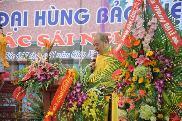 Cũng trong buổi lễ, đại diện chính quyền địa phương, ông: Đỗ Linh Hoạt đã lên phát biểu tri ân công đức của Đại Đức trụ trì cùng Phật tử, nhân dân địa phương, các Phật tử gần xa đã công đức tịnh tài, tịnh vật để xây dựng ngôi chùa được khang trang, tố hảo như ngày hôm nay. Ông cũng khẳng định vai trò của Phật giáo đối với sự phát triển của Đất nước, với phương châm Phật Pháp không thể tách dời thế gian, Phật giáo luôn đồng hành cùng dân tộc.
