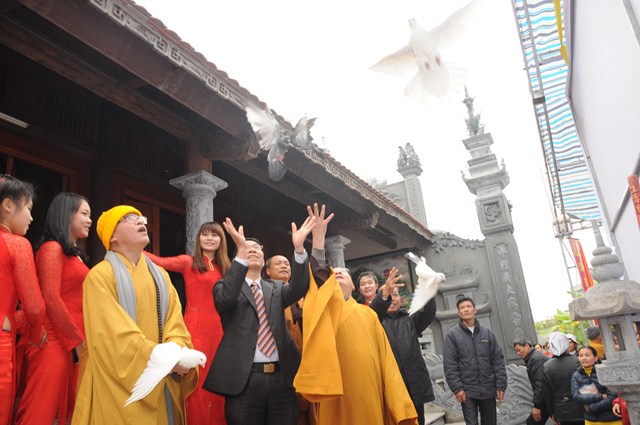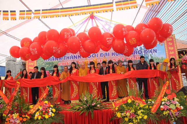 Trước khi kết thúc buổi lễ, Chư tôn đức Tăng Ban trị sự GHPGVN Tp. Hải Phòng cùng các cấp chính quyền địa phương đã làm lễ cắt băng khánh thành ngôi Đại hùng bảo điện chùa Viên Giác và làm lễ dâng hương bạch Phật, thả bong bay, chim bồ câu cầu nguyện thế giới hòa bình, chúng sinh an lạc trong niềm hoan hỷ của Chư tôn đức Tăng Ni, bà con Phật tử, thiện nam, tín nữ  gần xa và nhân dân địa phương.