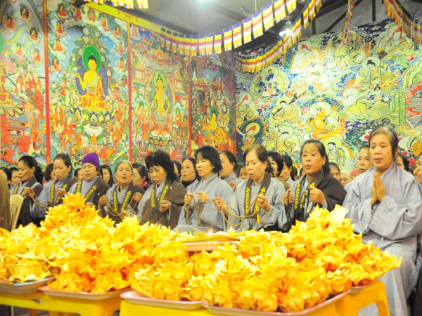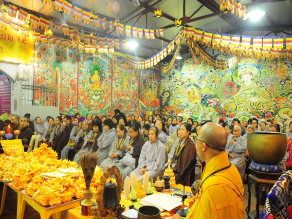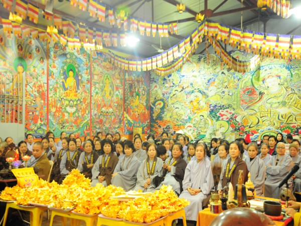 Nhân dịp này, Chư tôn đức Tăng trong chốn trụ xứ đã làm lễ chú nguyện cầu nguyện thế giới hòa bình, âm siêu, dương khánh và trì 108 biến chú đại bi trong suốt cả ngày tu tập, khiến cho tất cả mọi người như thấy mình đang được sống trong cảnh giới cực lạc vậy. Cực lạc không đâu xa mà cực lạc có thể có ngay tại chính cõi Ta Bà này nêu tâm ý của chúng ta thanh tịnh.