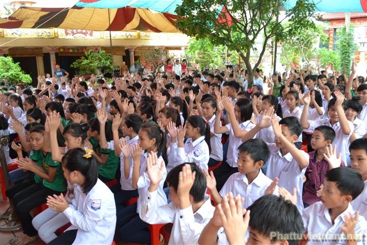 Khóa tu còn được đón tiếp các Thầy cô giáo và hơn 200 bạn trẻ đến từ các trường PTCS Tân Thành, PTCS Lạc Viên và PTCS Lý Tự Trọng TP. Hải Phòng.