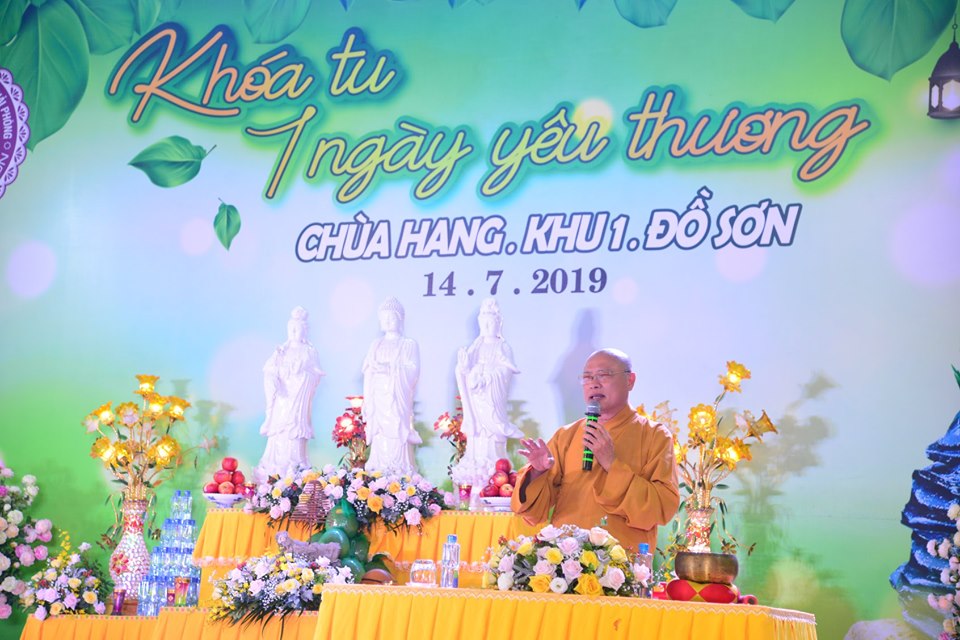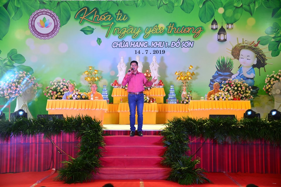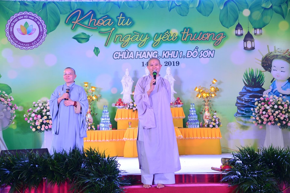 Thay mặt cho Ban tổ chức khóa tu mùa hè “ Một ngày yêu thương”, Đại đức Thích Giác Hiệu – Phó trưởng Ban tổ chức khóa tu, đương gia chùa Hang, Đồ Sơn đã lên phát biểu khai mạc khóa tu. Đại đức đã nhấn mạnh mục đích của việc tổ chức khóa tu mùa hè là để nuôi dưỡng tâm Từ bi, hạnh hỷ xả, hạnh lắng nghe, biết yêu thương mọi người xung quanh, đồng thời tạo thuận duyên cho các em thanh thiếu niên Phật tử và học sinh trong thành phố được giao lưu, chia sẻ, trau dồi kỹ năng sống nhằm hoàn thiện bản thân. Đồng thời, cũng góp phần xây dựng nếp sống văn hóa lành mạnh, tư duy tích cực, nghĩ điều thiện, nói điều thiện, làm việc thiện, đem lại lợi ích thiết thực cho tự thân của các em và nhân rộng ra làm lợi ích cho tuổi trẻ trong cộng đồng xã hội.