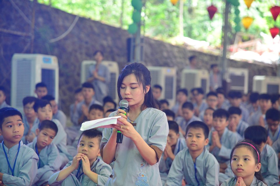 Buổi chiều, các bạn khóa sinh đã được nghe một thời pháp thoại do Sư cô Thích Giới Định – Phó trưởng Ban hướng dẫn thanh thiếu niên Phật tử Hải Phòng, chư Ni chùa Vẽ thuyết giảng một thời pháp với chủ đề: “ Nỗi lòng mẹ cha” nói lên tình yêu thương của cha mẹ đối với con cái thông qua các câu chuyện về tình mẫu tử, tình phụ tử, cũng như những lỗi lầm mà con cái đã gây ra để cha mẹ phải buồn lòng. Thời pháp thoại tuy ngắn nhưng rất cảm động, khiến cho các em khóa sinh không thể ngăn được những giọt nước mắt, qua lời kể chuyện, lời dẫn truyện đầy truyền cảm, chân thật của Sư cô Thích Giới Định, nhiều bạn trẻ dường như đã nhận ra những lỗi lầm mà mình đã gây ra, cảm thấy có lỗi với ba mẹ và những giọt nước mắt hối hận, ăn năn tuôn trào.