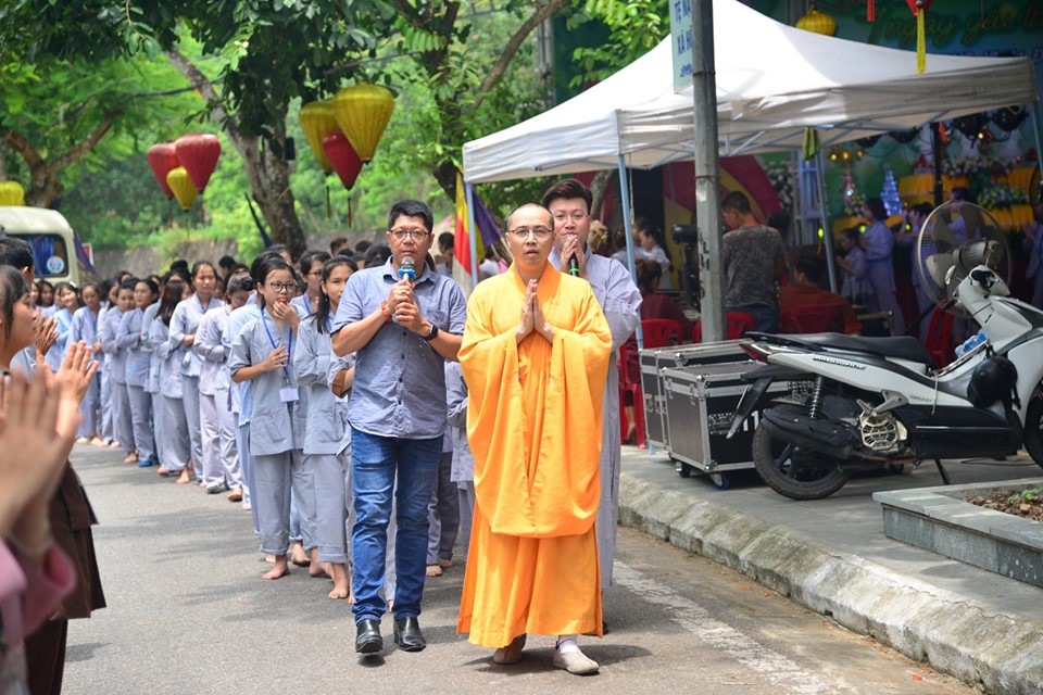 Quang lâm chứng minh buổi lễ khai mạc có sự hiện diện của: Hòa thượng Thích Thanh Giác – Phó trưởng Ban thường trực Ban hoằng pháp TƯ GHPGVN, phó trưởng BTS GHPGVN thành phố Hải Phòng, trưởng BTC khóa tu “ Một ngày yêu thương” lần thứ 8, trụ trì chùa Hang – Đồ Sơn; Đại Đức Thích Giác Hiệu – Phó trưởng BTC khóa tu, đương gia chùa Hang – Đồ Sơn, cùng quý Sư thầy, quý Sư cô trong ban điều phối khóa tu.