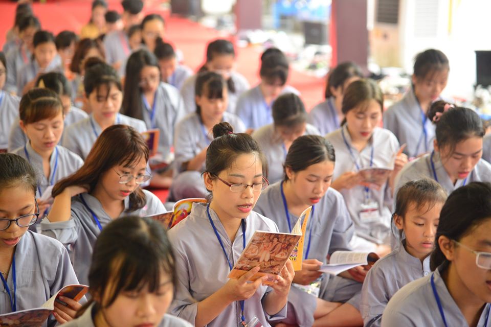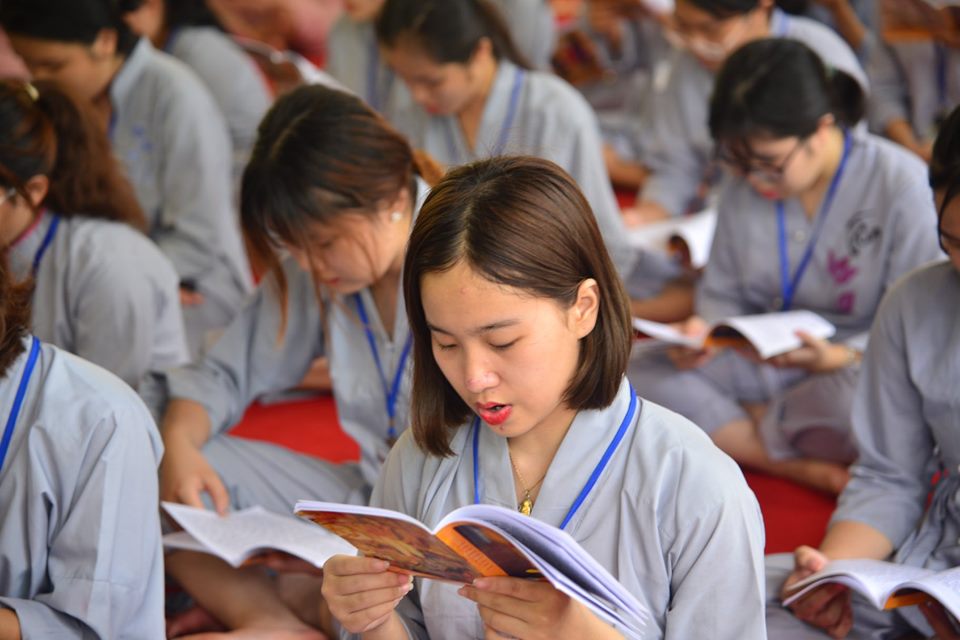 Ngay sau khi kết thúc buổi lễ khai mạc, hơn 700 khóa sinh đã chính thức bước vào thời khóa tu tập của khóa tu: “Một ngày yêu thương” lần thứ 8 với thời khóa tụng kinh Vu Lan – Báo Hiếu, thông qua thời kinh này nhằm hướng dẫn các bạn trẻ biết tụng kinh, hiểu về mục đích của việc tụng kinh. Đặc biệt hơn nữa là, qua lời Phật dạy trong kinh Vu lan – Báo Hiếu, các em khóa sinh hiểu được phần nào công sinh thành dưỡng dục của cha và mẹ, những nỗi vất vả của người mẹ khi phải chịu mọi khổ đau khi sinh nở, cũng như nuôi nấng các em được trưởng thành, có được thân hình, vóc dáng, cuộc sống no ấm như ngày hôm nay.