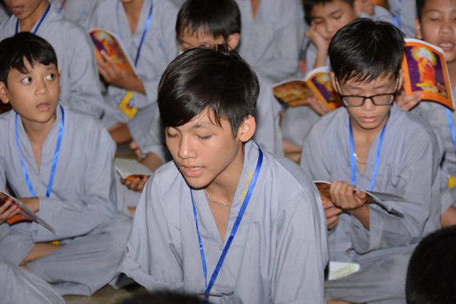 Buổi tối cùng ngày, các em đã được thực hành tọa thiền và tụng kinh Vu Lan – Báo Hiếu, kết thúc một ngày tu học Phật Pháp bổ ích và lý thú.