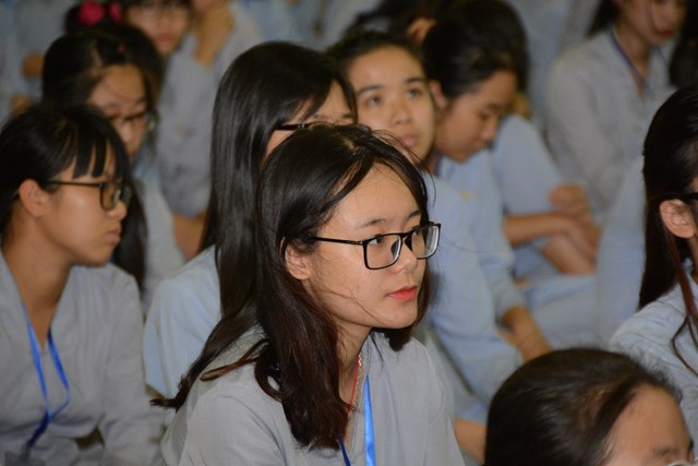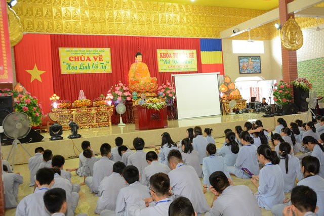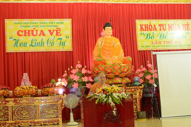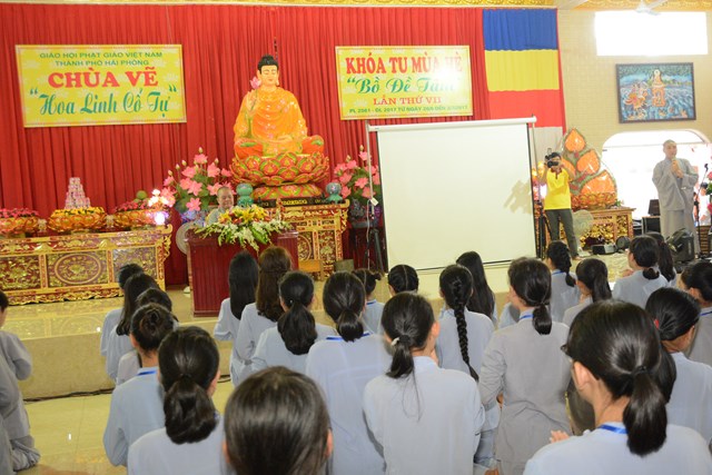 Buổi chiều cùng ngày, các bạn khóa sinh đã được nghe Đại đức Thích Quảng Nghĩa – Trưởng ban Hướng dẫn Phật tử GHPGVN thành phố Hải Phòng giảng về 4 điều Phật dạy trong cuộc sống. Đó là sống vui, sống khỏe, sống trẻ và sống đẹp. Cuộc sống của chúng ta hàng ngày rất bận rộn, chúng ta cần phải biết cân bằng trong cuộc sống, biết sắp xếp thời gian sao cho hợp lý, ăn ngủ điều độ, giảm bớt sự căng thẳng. Có được như vậy thì chúng ta mới có một sức khỏe tốt, bởi sức khỏe là một nhân tố quan trọng, nhân tối quyết định tới cuộc sống của mỗi con người.