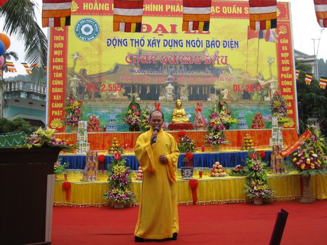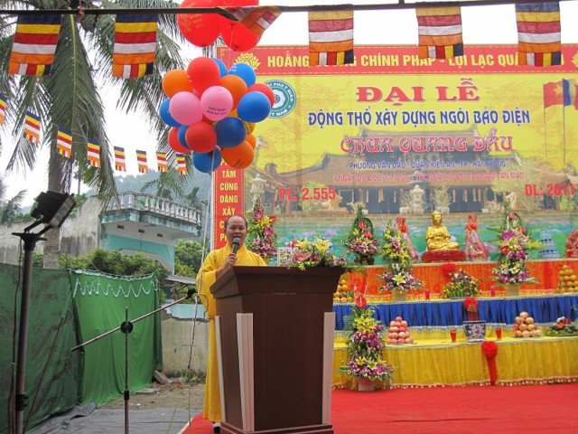 TT. Thích Thanh Giác đã có bài phát biểu động viên, khích lệ Sư Thầy trụ trì và nhân dân địa phương đóng góp tiền của, vật chất cùng Sư Thầy trụ trì để xây dựng chùa.
