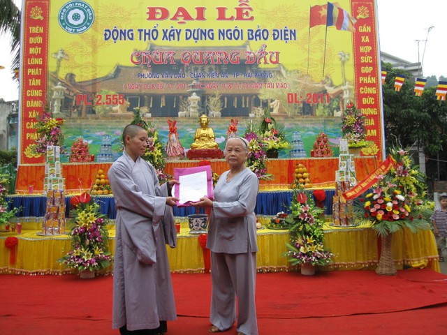 Được sự chấp thuận của Thành Hội PG TP Hải Phòng, Phật tử và nhân dân địa phương đã thỉnh Sư Cô Thích Tịnh Dương về trụ trì chùa.
