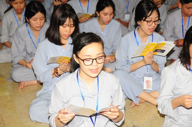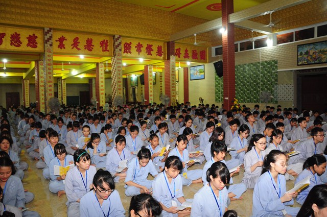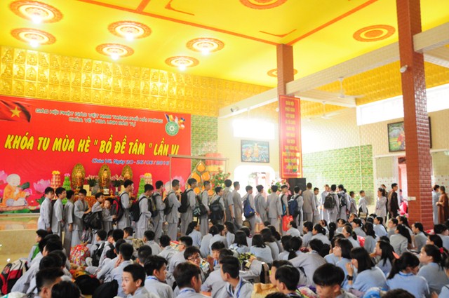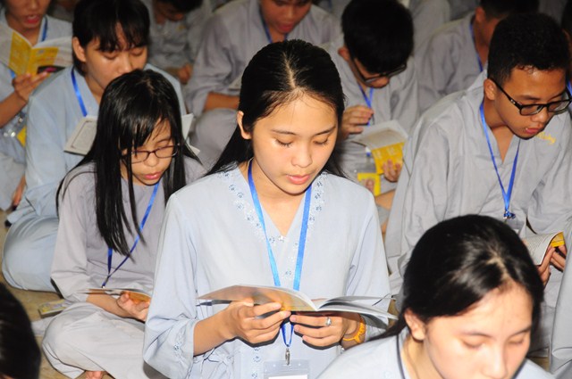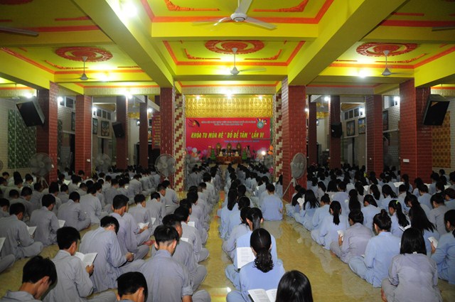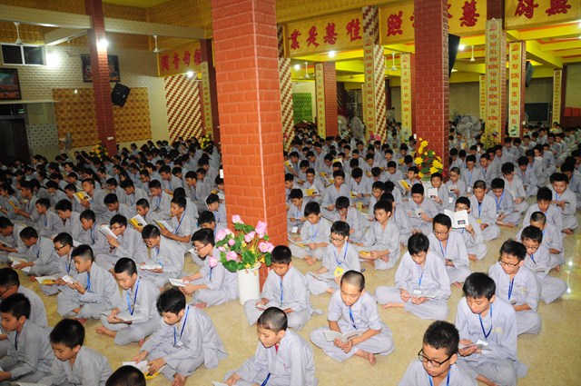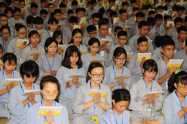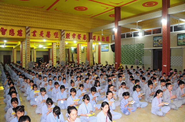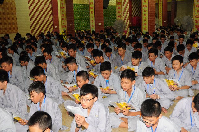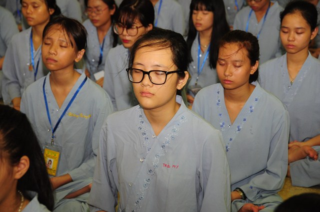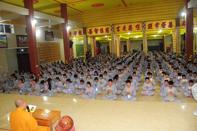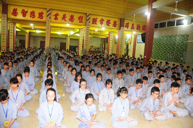 Gần 700 em khóa sinh có mặt trong ngày đầu tiên của khóa tu đã đồng thanh phát nguyện sẽ cố gắng tu học, nghe lời quý sư thầy, sư cô và thực hiện theo đúng những quy định mà Ban tổ chức của khóa tu đã đề ra để không phụ lòng công ơn của quý thầy cô dìu dắt, hướng dẫn các em trong những ngày tu học còn lại.