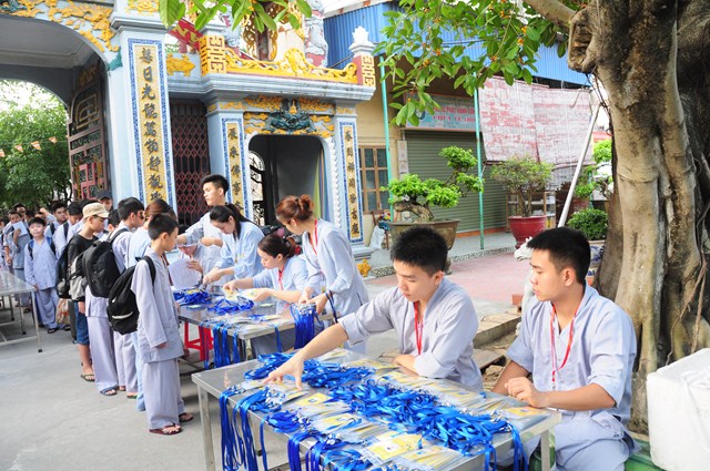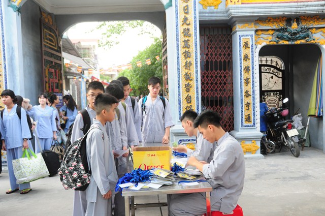 Hôm nay là ngày đầu tiên của khóa tu, ngay từ sáng sớm, các vị phụ huynh của các em khóa sinh đã đưa các em tới chùa nhận thẻ, nhận phòng, ổn định chỗ ăn, nghỉ để chuẩn bị tham dự khóa tu mùa hè “Bồ Đề Tâm” lần thứ 6 năm 2016 trong suốt 1 tuần liên tục từ ngày 20/6/2016 ( 16/5/Bính Thân) đến hết ngày 26/6/2016 ( 22/5/Bính Thân).