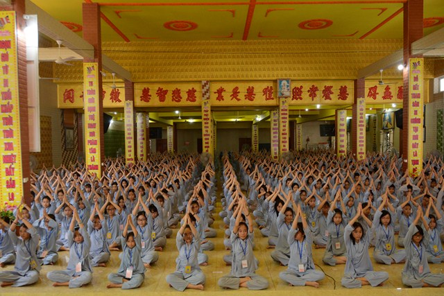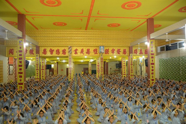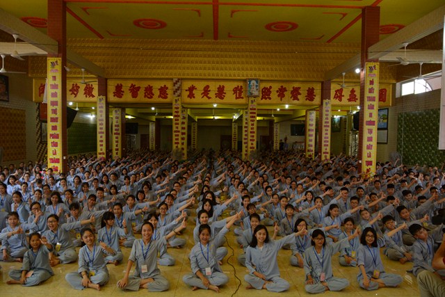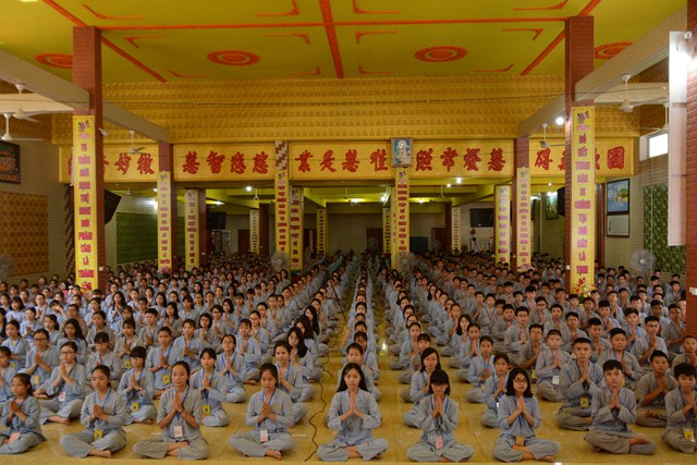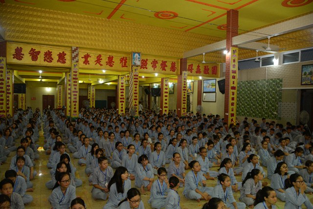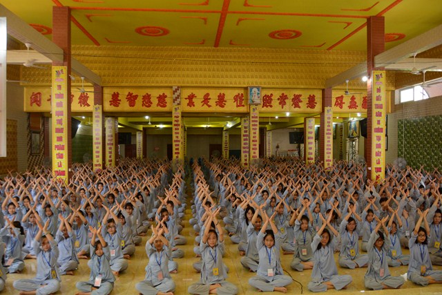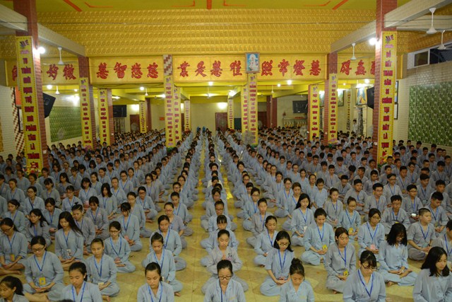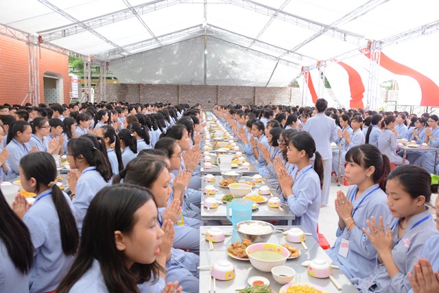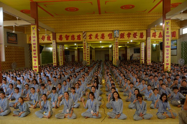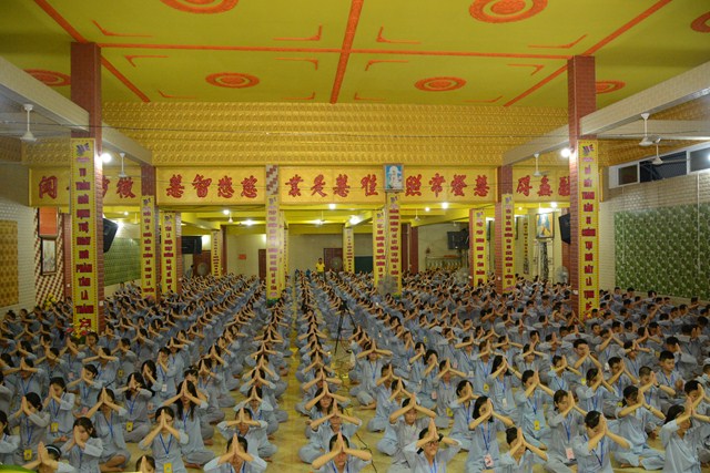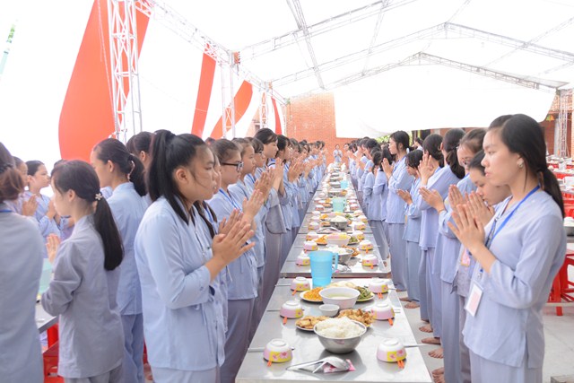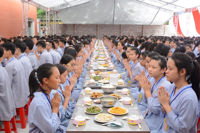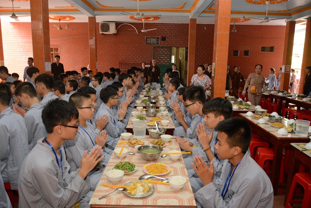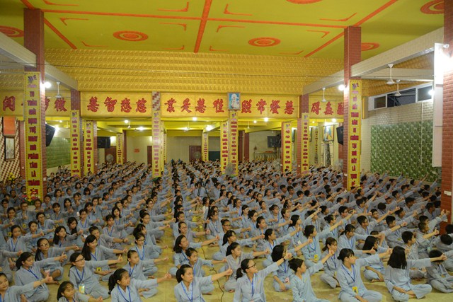 Hôm nay là ngày nhập tu đầu tiên của các em, các em có mặt từ rất sớm để nhận thẻ, nhận phòng, nhận chúng để tham dự khóa tu, sau hơn 1 giờ đồng hồ hầu hết tất cả các em đã đăng ký tham dự khóa tu đều có mặt tại chùa. Sau đó, các em đã vân tập về giảng đường của chùa để nghe quý sư thầy, sư cô phổ biến nội quy tu học, học các oai nghi khi tới chùa, học cách lễ Phật, lạy Phật…và học bài hát chính thức của khóa tu mang tên: “ Về Đây Bên Nhau” chuẩn bị cho buổi lễ khai mạc vào sáng ngày 27/6/2017 (4/6/Đinh Dậu).