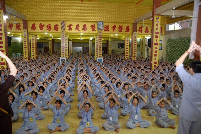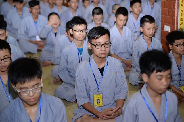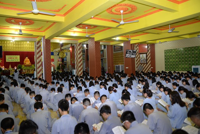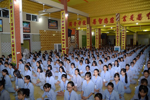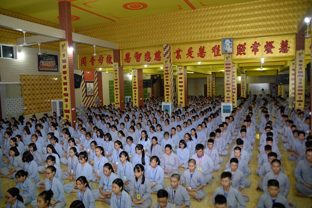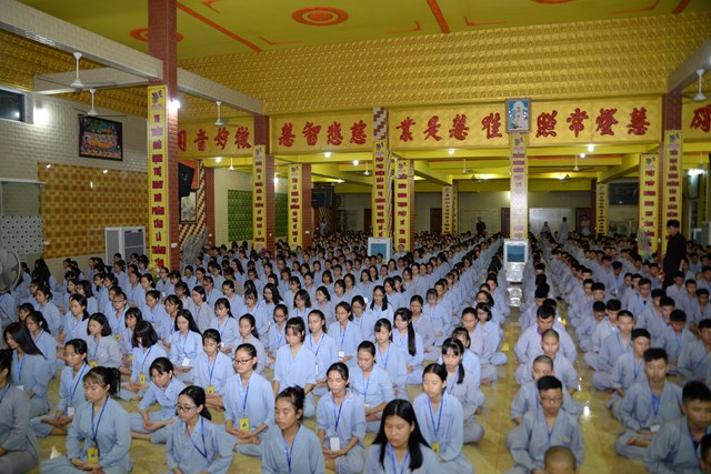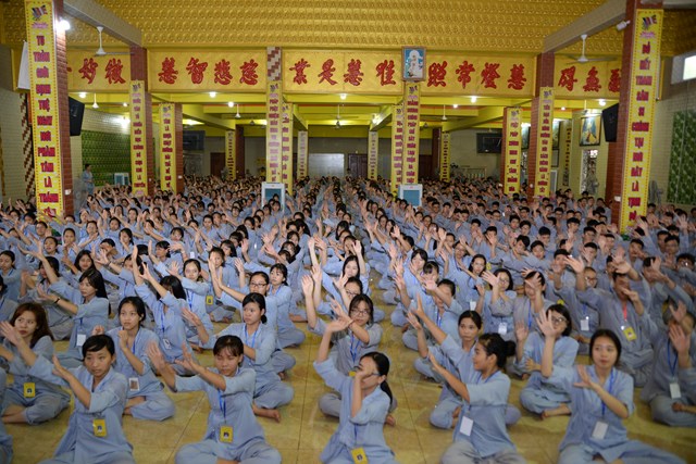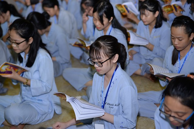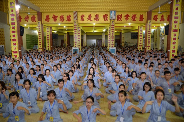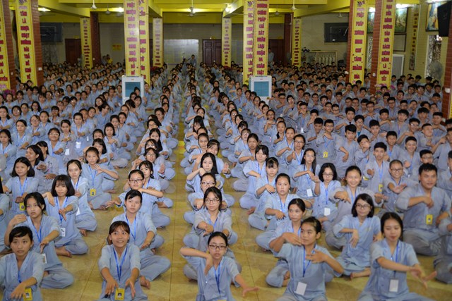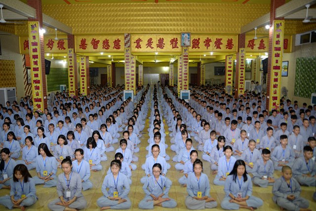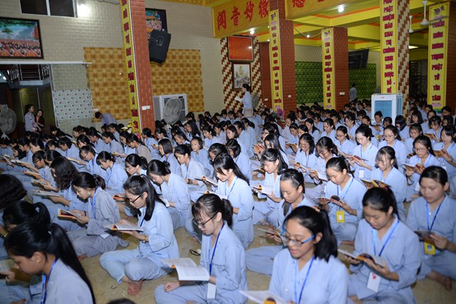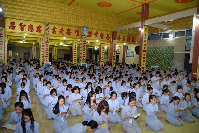 Buổi tối của ngày tu học đầu tiên, các bạn khóa sinh cũng đã được quý thầy cô trong Ban chủ nhiệm khóa tu hướng dẫn cách ngồi thiền, cách tụng kinh và thực hành tụng kinh Vu Lan – Báo Hiếu tại giảng đường với sự tham dự của hơn 800 bạn khóa sinh.