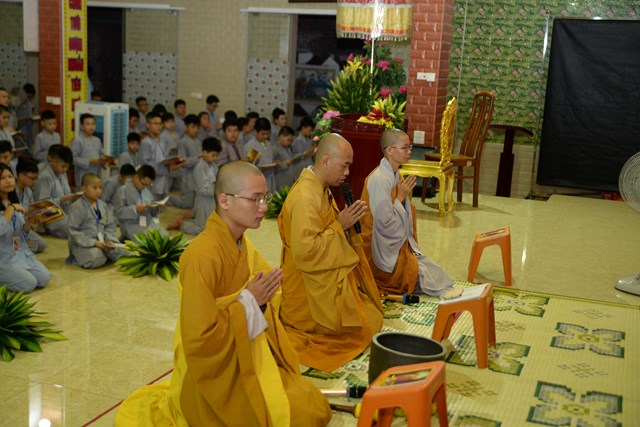Ngay sau khi nhận thẻ, nhận phòng và nhận chúng, quý thầy trong BTC khóa tu đã hướng dẫn các khóa sinh các uy nghi khi tới chùa, cách đi đứng nằm ngồi trong chốn thiền môn, cách lễ Phật, lạy Phật, niệm Phật, kinh hành, làm quen với các nhạc hiệu mà các em được nghe trong quá tu: Hiệu lệnh tập trung, hiệu lệnh giờ nghỉ trưa, hiệu lệnh thụ trai, hiệu lệnh trì tĩnh và tập bài hát chủ đạo của khóa tu “ Ươm mầm tuổi trẻ”, sáng tác của Nhạc sỹ Quý Luân.