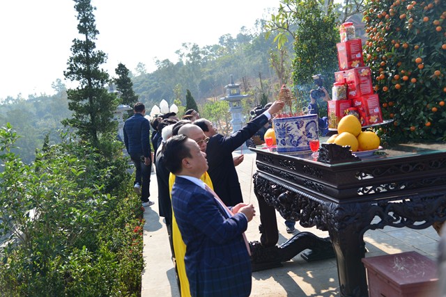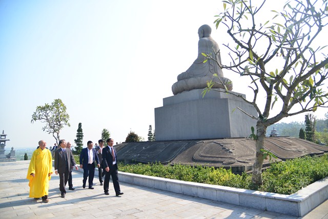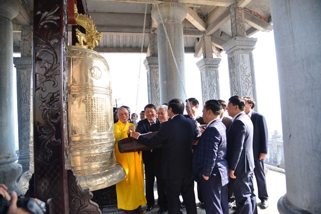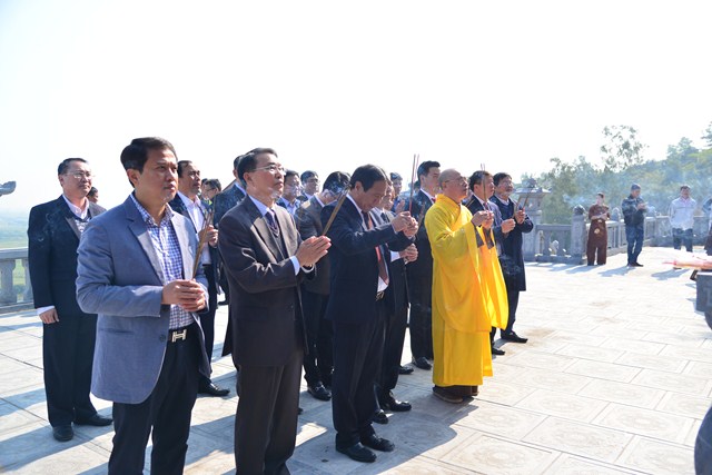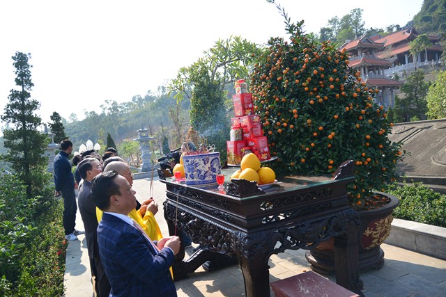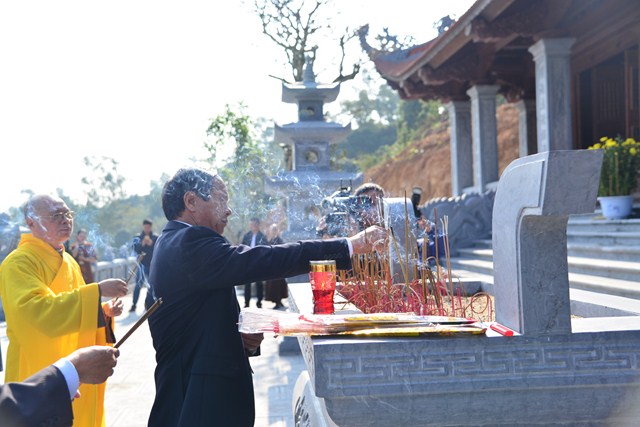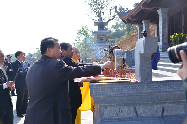 Lãnh đạo thành phố dâng hương trước bảo tượng Phật Hoàng Trần Nhân Tông