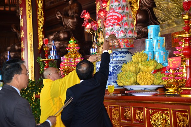 Lãnh đạo thành phố và chư tôn đức dâng hương lễ Phật tại chính điện chùa Long Hoa