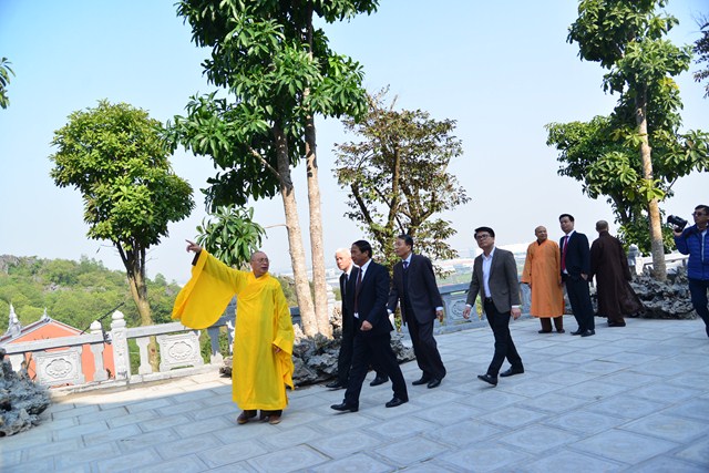 Tiếp đoàn có Hòa thượng Thích Thanh Giác – Ủy viên HĐTS, phó trưởng Ban thường trực Ban Hoằng pháp TƯ GHPGVN, phó trưởng Ban thường trực BTS GHPGVN thành phố Hải Phòng, trụ trì chùa Long Hoa; Thượng tọa Thích Giác Sơn – Phó trưởng Ban trị sự GHPGVN quận Lê Chân, cùng chư tôn đức Tăng chùa Long Hoa.