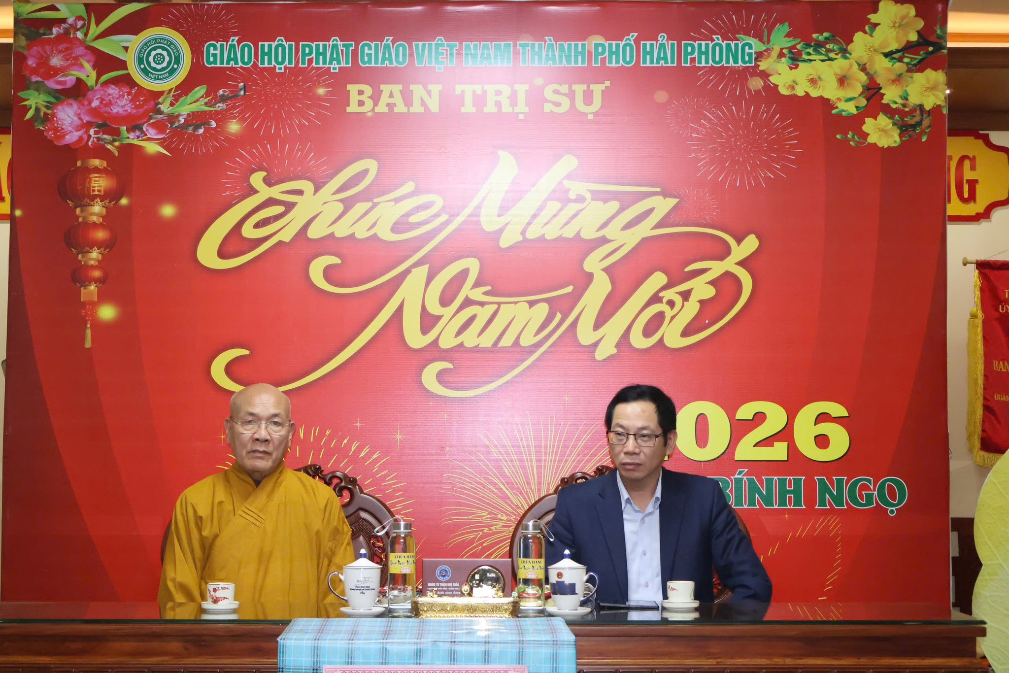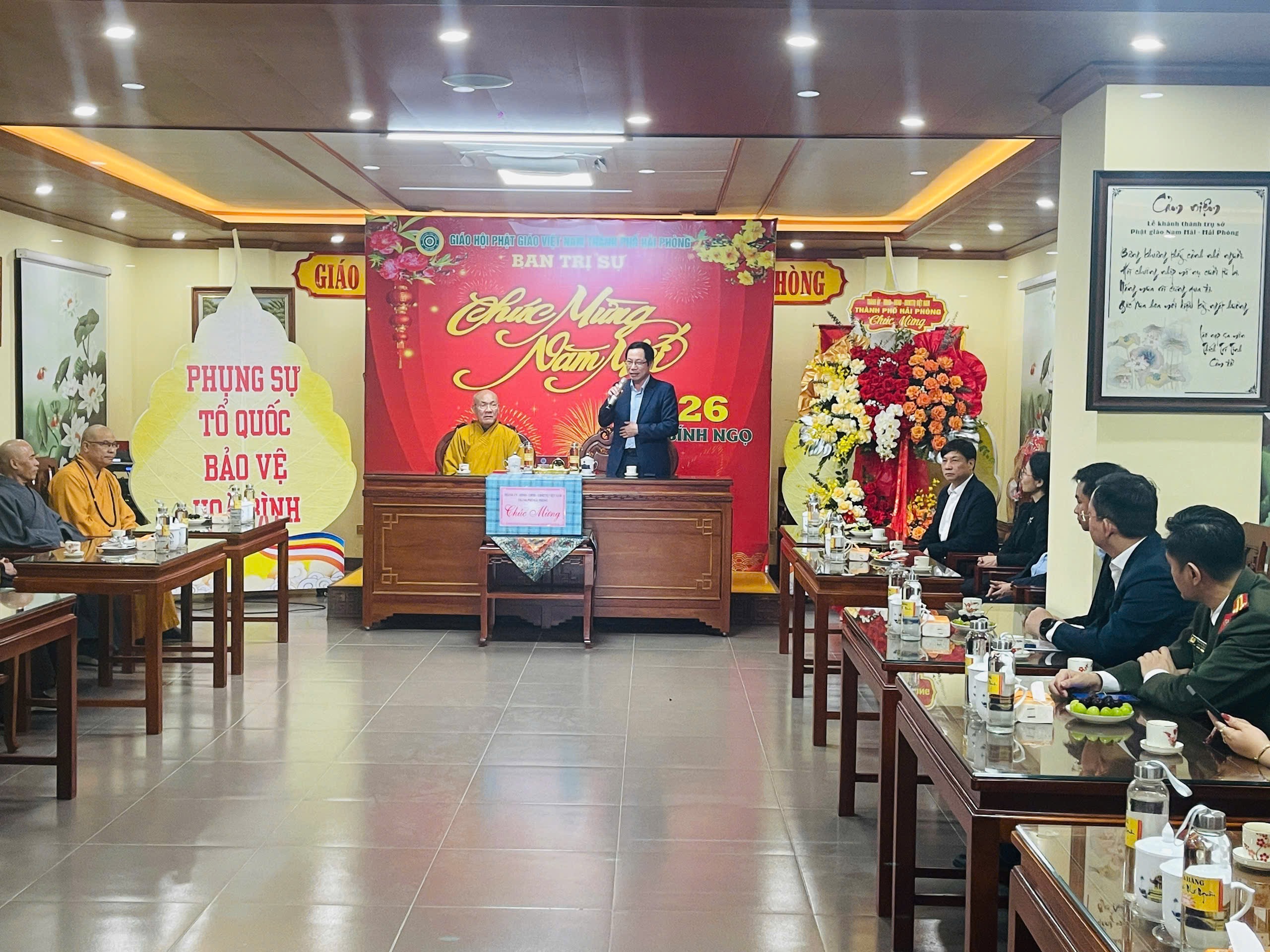 Chiều ngày 06/02/2026 (nhằm 19 tháng Chạp năm Ất Tỵ), tại chùa Nam Hải (Trụ sở Ban Trị sự GHPGVN Thành phố Hải Phòng), phái đoàn lãnh đạo Thành phố do ông Vũ Tiến Phụng, Ủy viên Ban Thường vụ Thành ủy, Phó Chủ tịch UBND thành phố làm trưởng đoàn, cùng lãnh đạo các sở ban ngành đã tới thăm và chúc Tết Ban Trị sự GHPGVN thành phố nhân dịp chuẩn bị đón Tết nguyên đán xuân Bính Ngọ – 2026.