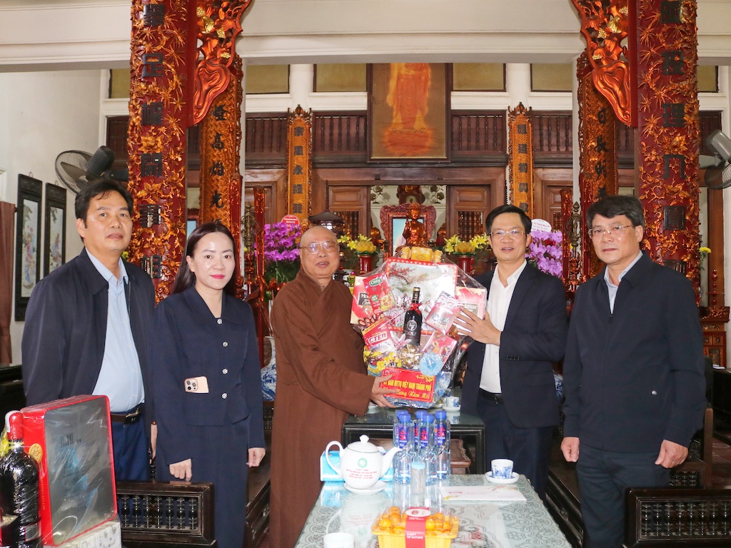Ông Phạm Văn Lập, Phó Bí thư Thành ủy, Chủ tịch UB MTTQVN thành phố Hải Phòng chúc tết Hoà thượng Thích Thanh Giác tại Tổ đình Phổ Chiếu.