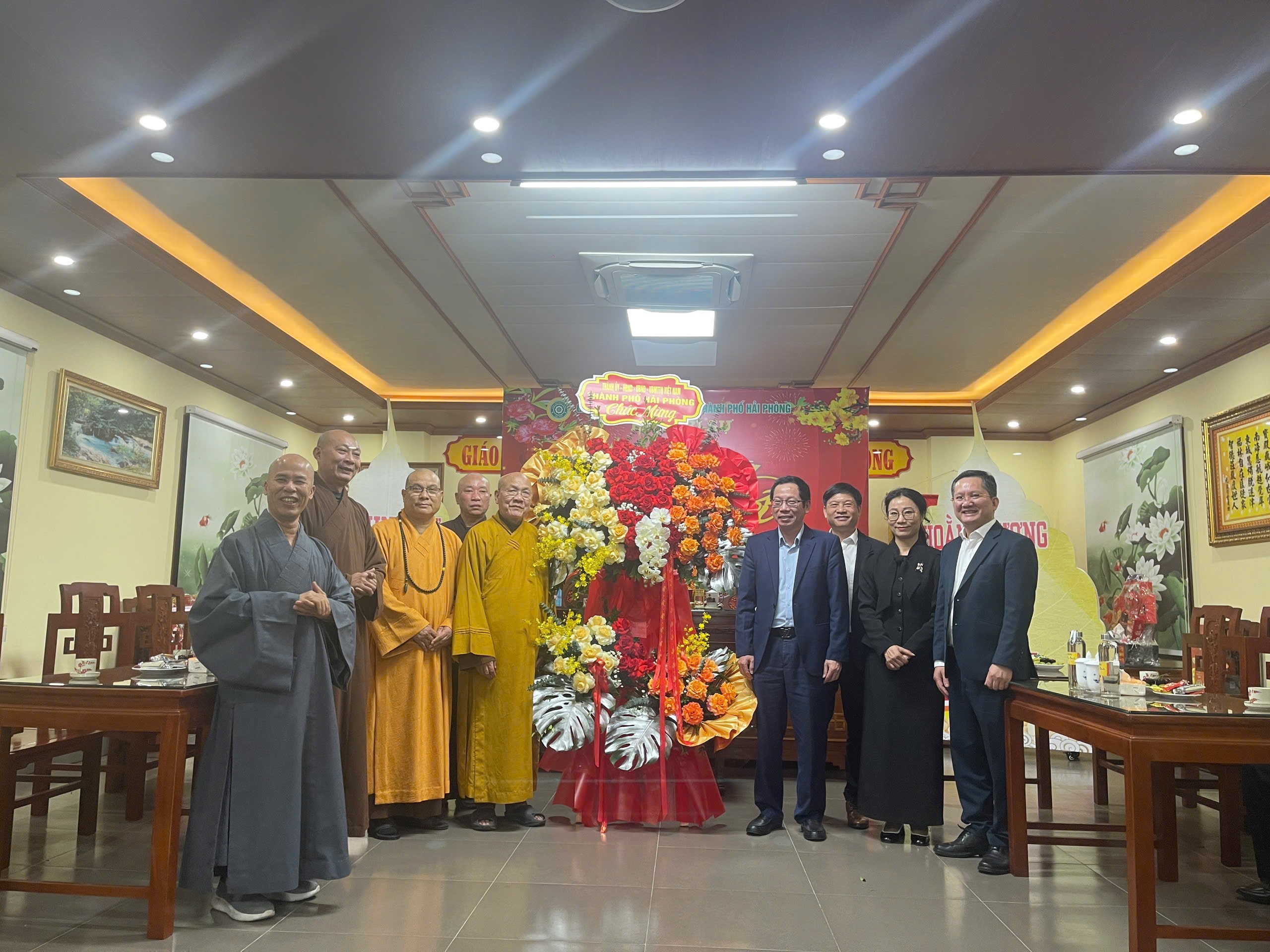 Ông Vũ Tiến Phụng, Phó Chủ tịch UBND thành phố chúc tết Ban trị sự GHPGVN thành phố Hải Phòng