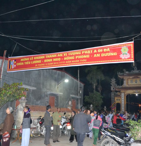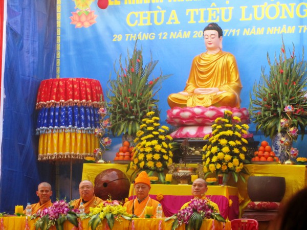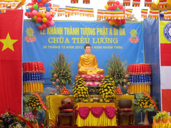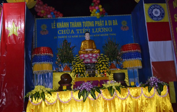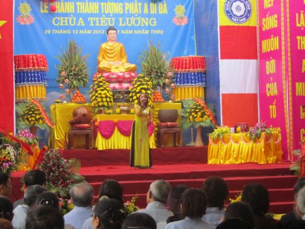 Trước khi tiến hành nghi lễ an vị tượng Phật A Di Đà, ĐĐ. Thích Thanh Nghiêm, trụ trì chùa Tiêu Lương, kiêm trưởng ban tổ chức đã tuyên đọc diễn văn khai mạc buổi lễ an vị Phật nhân kỷ niệm ngày khánh đản của đức Phật A Di Đà.