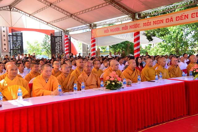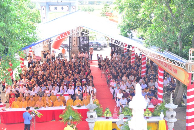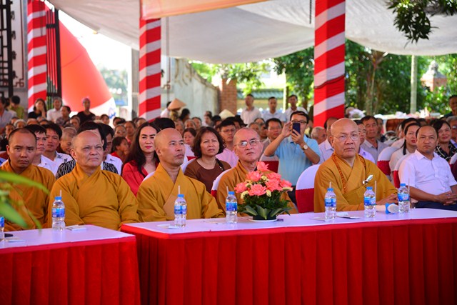 Ban đạo từ tại buổi lễ, HT. Thích Quảng Tùng đã chia sẻ về ý nghĩa, mục đích và công đức của việc xây chùa. Xây chùa mục đích chính là để cho các Phật tử có nơi tu học, tu tâm, dưỡng tính. Ngoài ra, xây chùa còn có mục đích giúp yên dân bởi dân gian ta vẫn thường quan niệm chùa là bùa làng. Mỗi làng mỗi xóm nên có một ngôi chùa thì ở đó nhân dân mới được ấm no, hạnh phúc. Hòa thượng chia sẻ thêm, đây là ngôi chùa rất linh thiêng, ngoài thờ Phật còn thờ các vị Vua nhà Mạc có công với Dân tộc, có công với Đất nước. Đồng thời, Hòa thượng mong muốn trong thời gian tới sẽ tiếp tục nhận được sự đóng góp, hằng tâm, hằng sản của các nhà hảo tâm, các mạnh thường quân, các cơ quan ban ngành, đoàn thể , sớm đưa công trình đưa vào sử dụng, để bà con Phật tử, nhân dân địa phương có nơi lễ bái, tu học, sinh hoạt tín ngưỡng văn hóa tâm linh và tán thán công đức của Đại đức Trụ trì, cũng như chính quyền địa phương đã tạo mọi điều kiện giúp đỡ trong thời gian vừa qua.