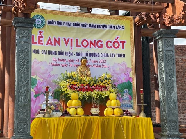 Sáng ngày 24/07/2022 (nhằm ngày 26/06 năm Nhâm Dần), tại xã Tây Hưng, huyện Tiên Lãng, thành phố Hải Phòng đã long trọng diễn ra Đại lễ an vị long cốt ( cất nóc) ngôi Đại Hùng Bảo Điện và Tổ đường chùa Tây Thiên, xã Tây Hưng, huyện Tiên Lãng, thành phố Hải Phòng sau gần 3 tháng thi công, xây dựng.
