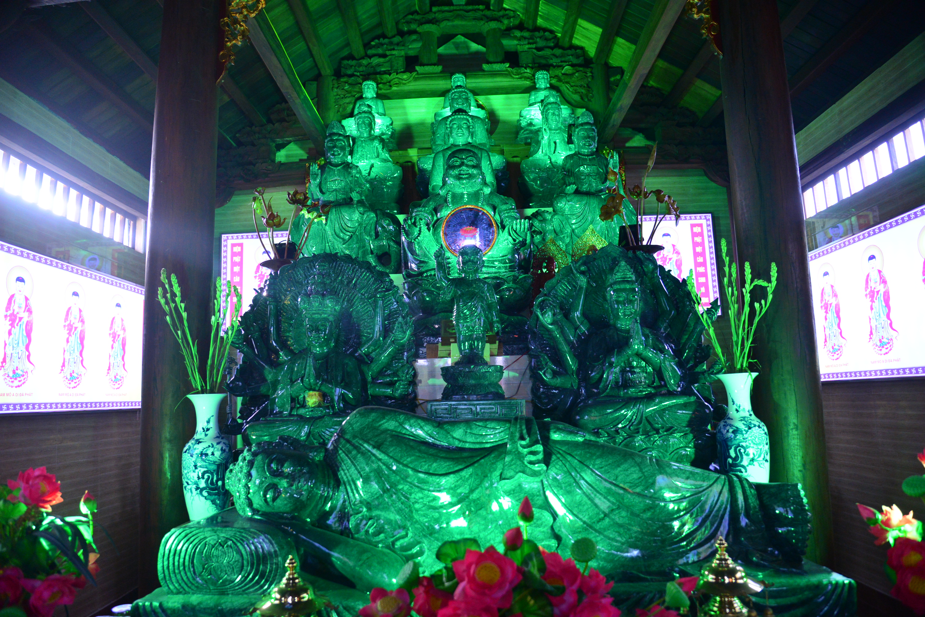 Tôn tượng Bồ tát – Quán Thế Âm Quá Hải tại chùa Quang Minh do các nghệ nhân Núi Ngũ Hành Sơn, thành phố Đà Nẵng chế tác. Thánh tượng Bồ tát – Quán Thế Âm được tôn tạo bằng đá trắng, có chiều cao gần 5 mét, bệ cao 2 mét, nặng hơn 8 tấn, đứng ngự trên lưng rồng, tay cầm bình nước Cam Lồ, hướng mặt về phía biển Đồ Sơn, thành phố Hải Phòng.