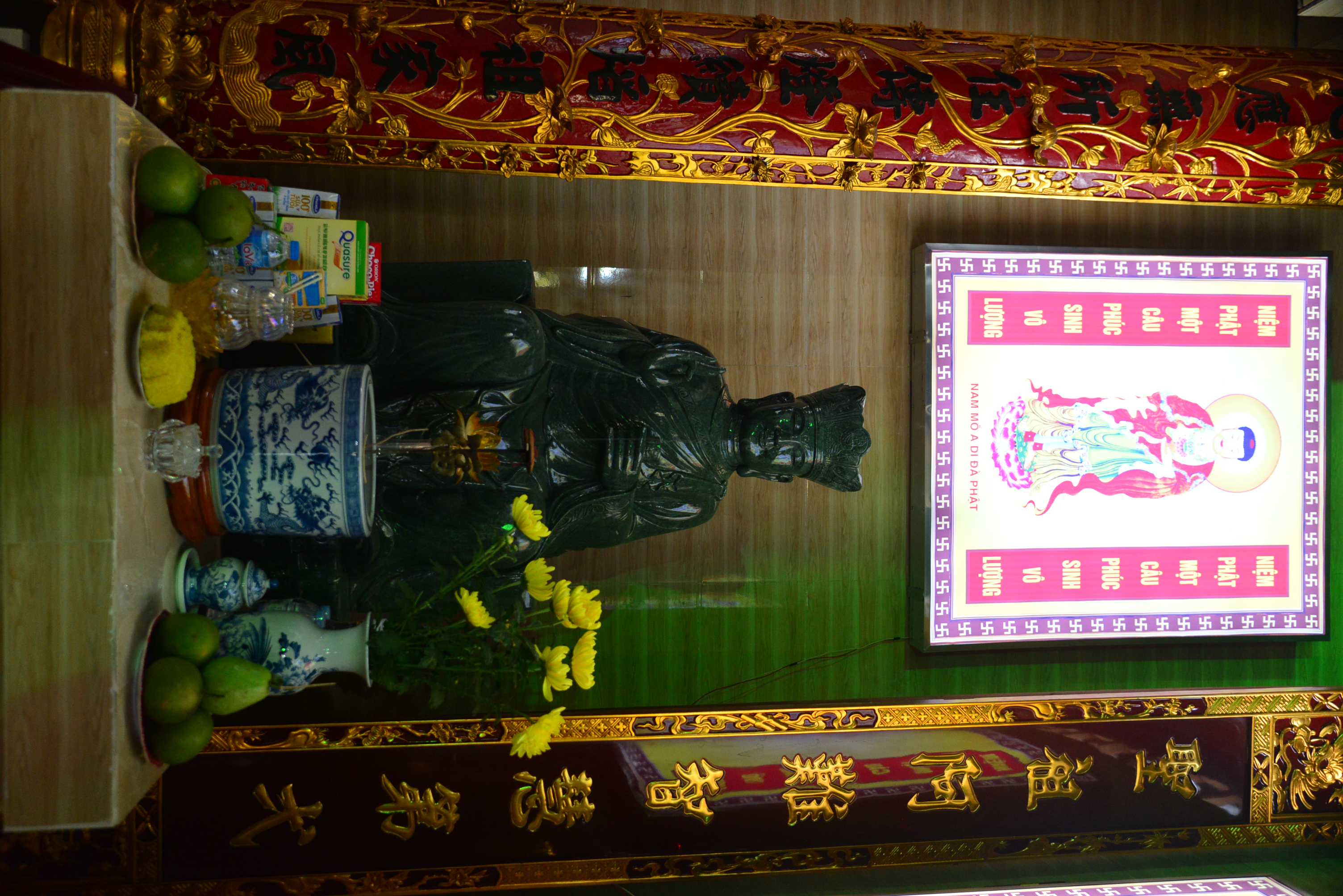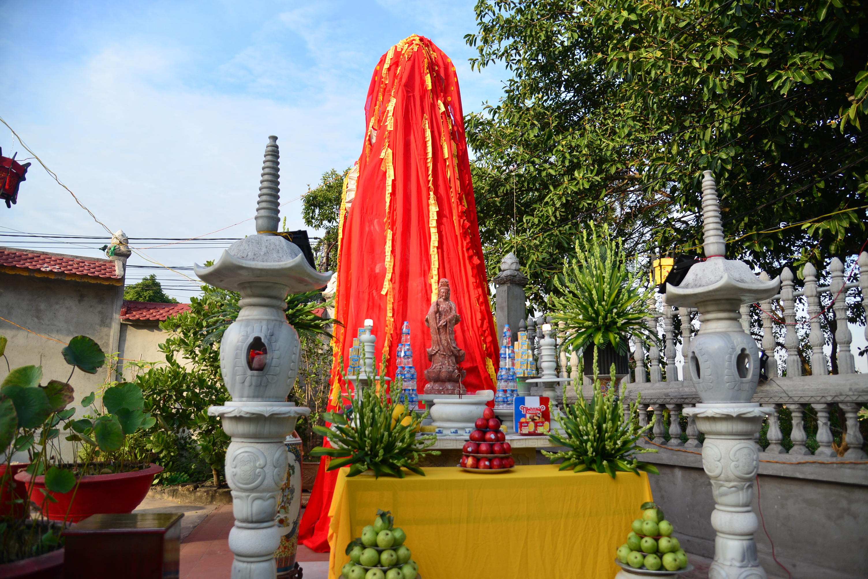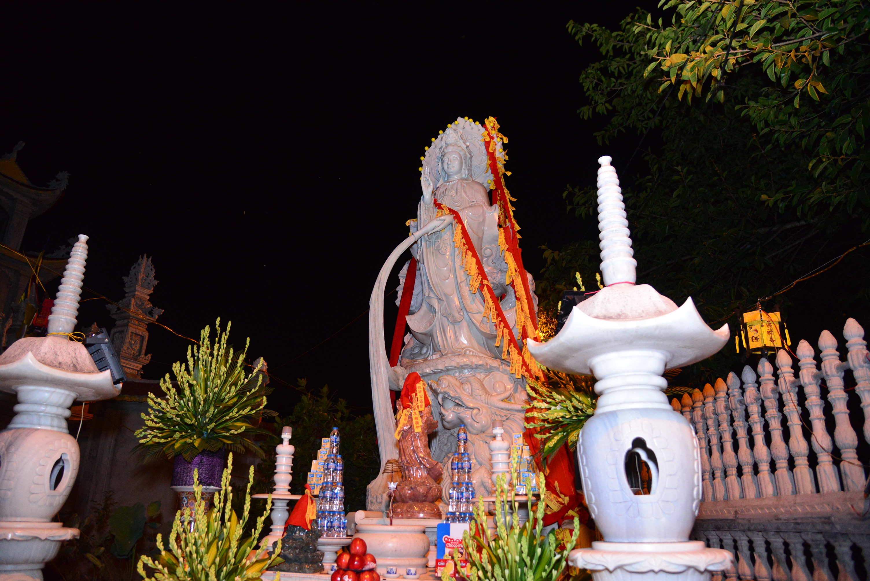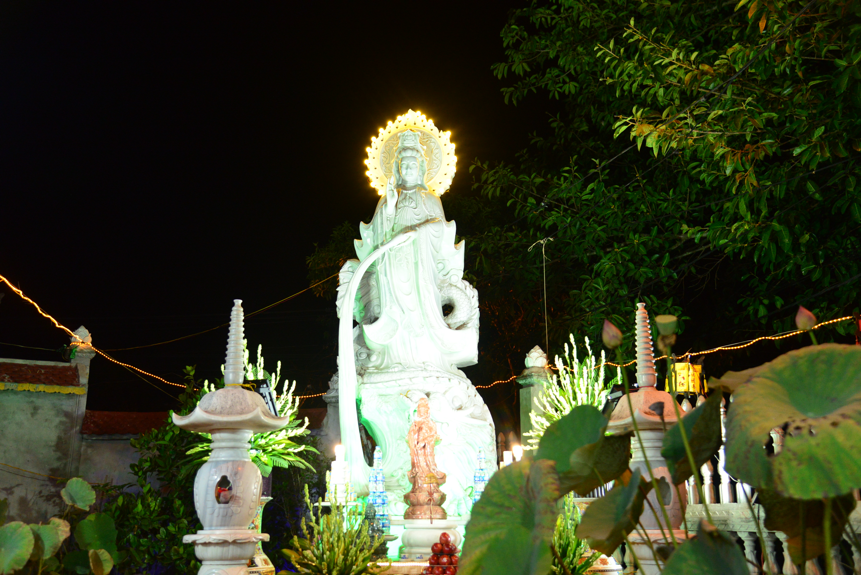 Mặc dù, Ngôi Đại Hùng bảo điện, Tổ đường và hệ thống tượng Phật, tượng Tổ đã đủ nhưng hiện nay chùa vẫn chưa có tôn tượng Bồ Tát Quán Thế Âm để bà con Phật tử lễ lạy, chiêm bái. Chính vì lẽ đó, Sư Cô Thích Diệu Thuỵ đã kêu gọi một số Phật tử, các nhà hảo tâm, các mạnh thường quân gần xa công đức tôn tạo tôn tượng Bồ Tát Quán Thế Âm. Do Hải Phòng là thành phố Biển, nên Sư cô trụ trì đã cùng các Phật tử, nhân dân địa phương thống nhất tôn tạo hình tượng Bồ- tát Quán Thế Âm bằng đá trắng với tư thế Trụ Long quá Hải ( Cưỡi rồng vượt biển) với ước nguyện Ngài sẽ thị hiện trên biển để cứu độ chúng sinh, giúp chúng sinh tiêu trừ tam độc: Tham – Sân – Si