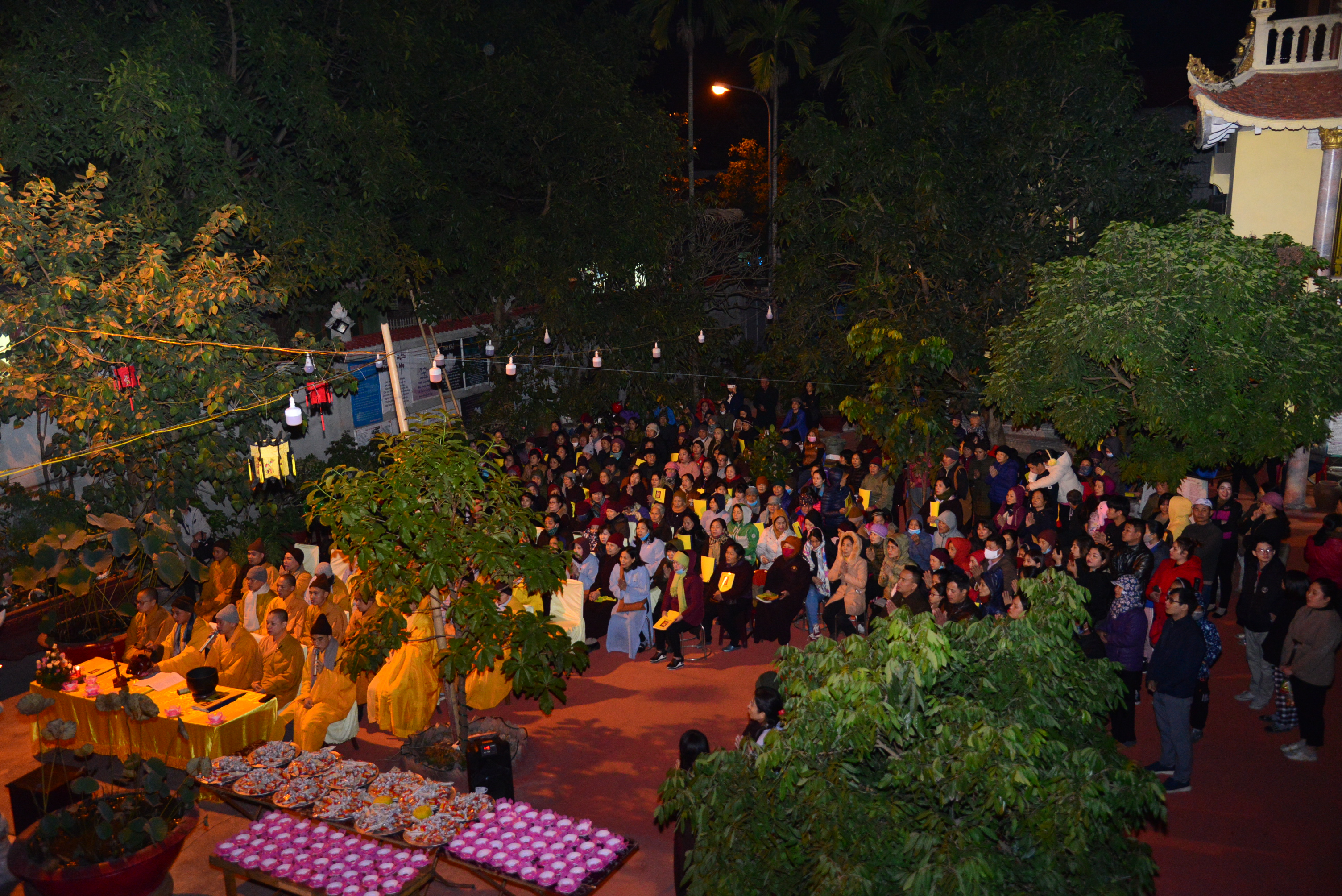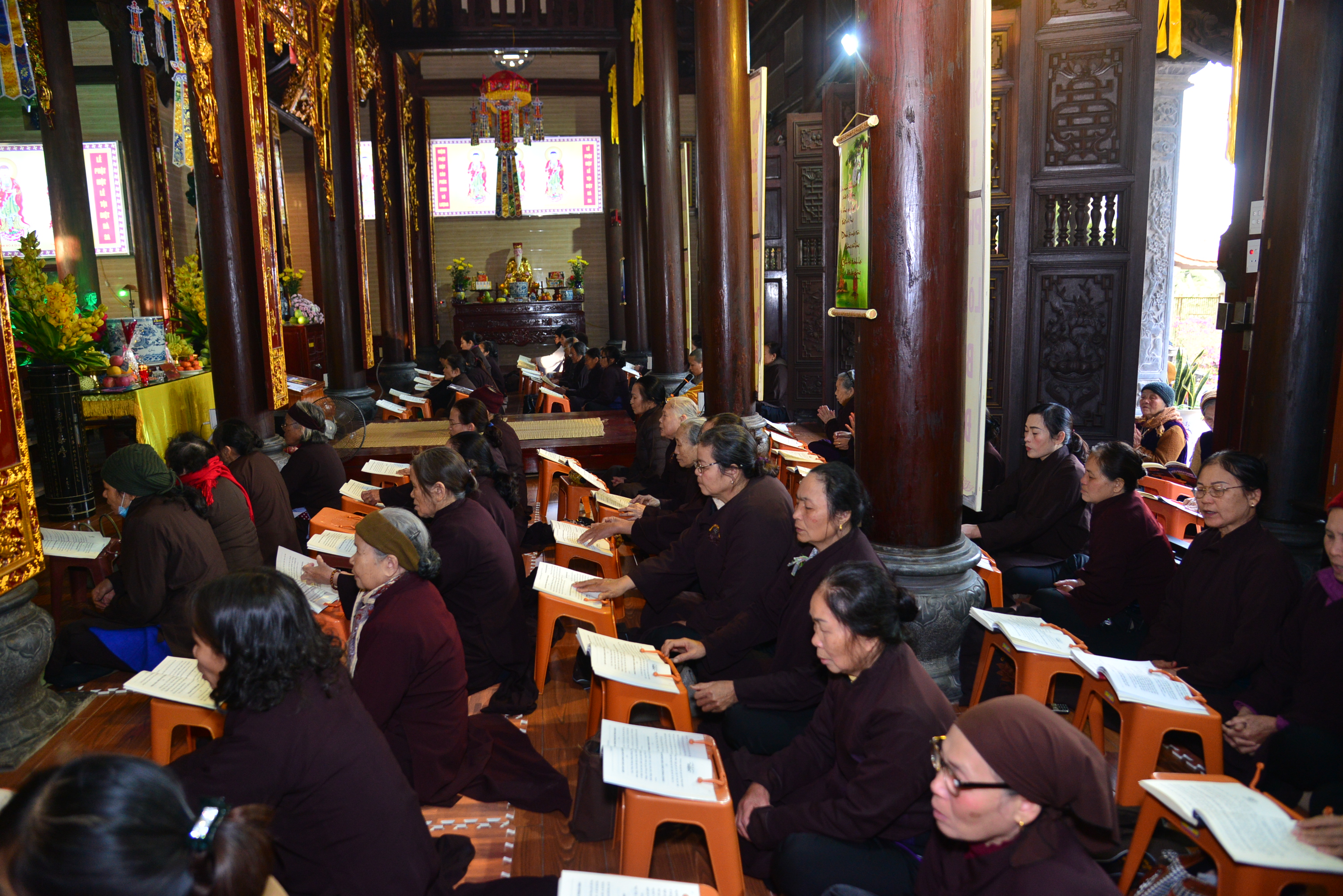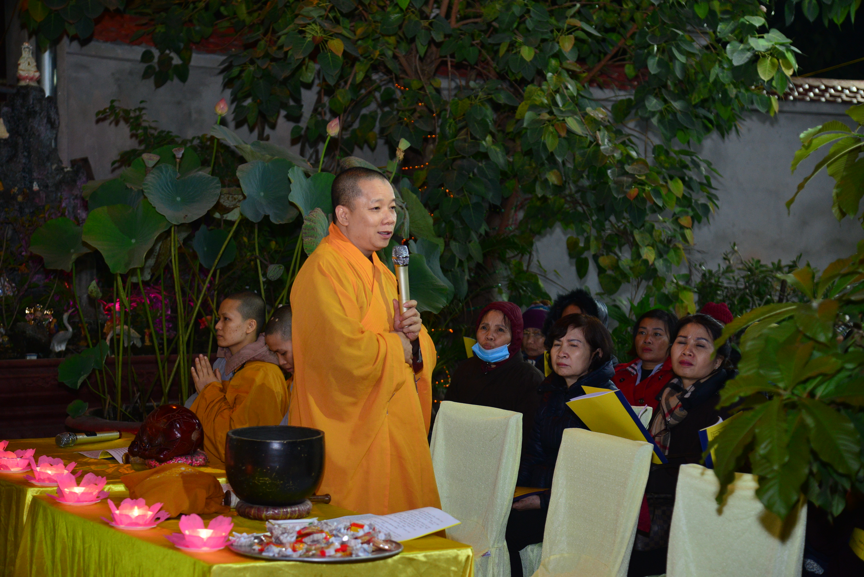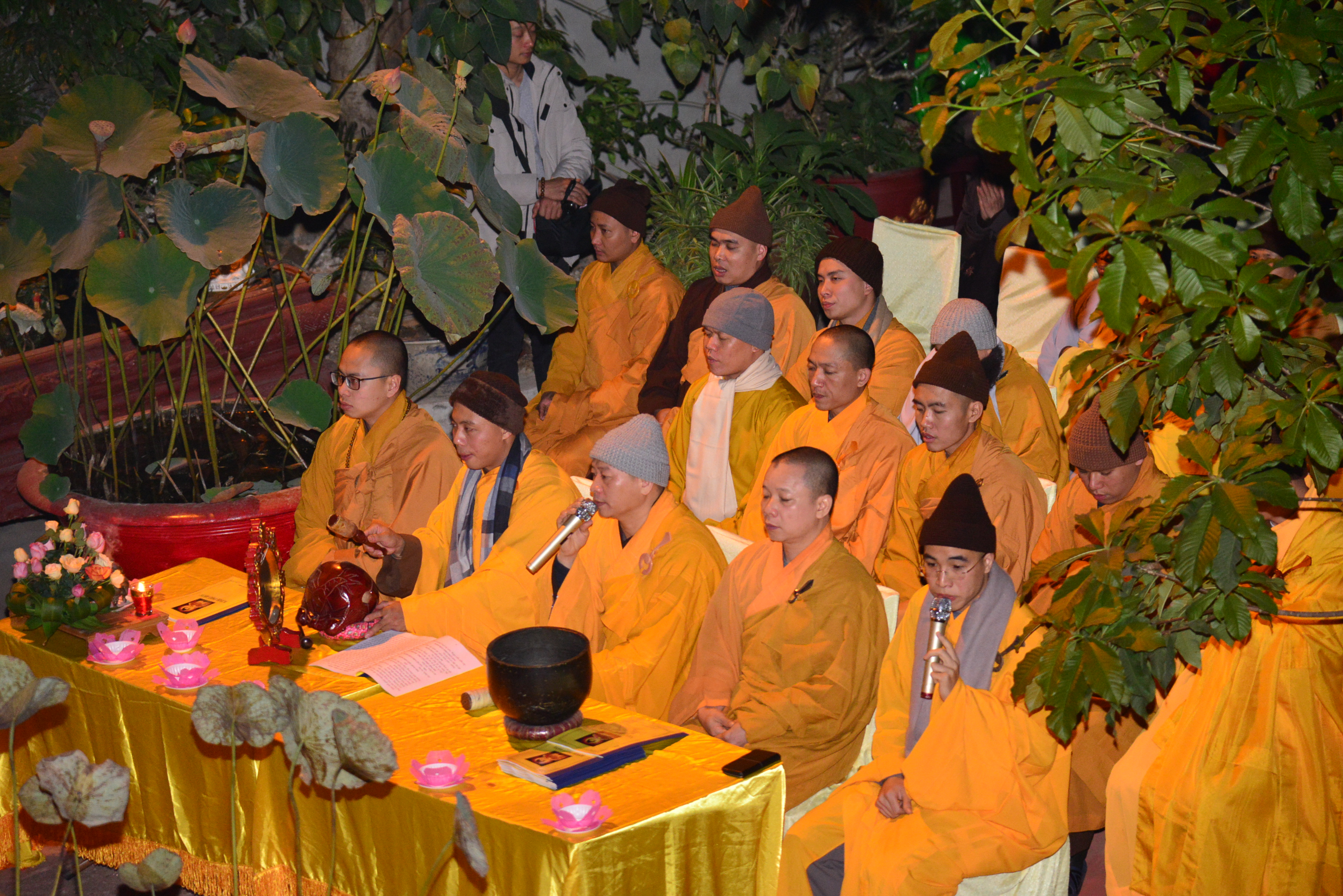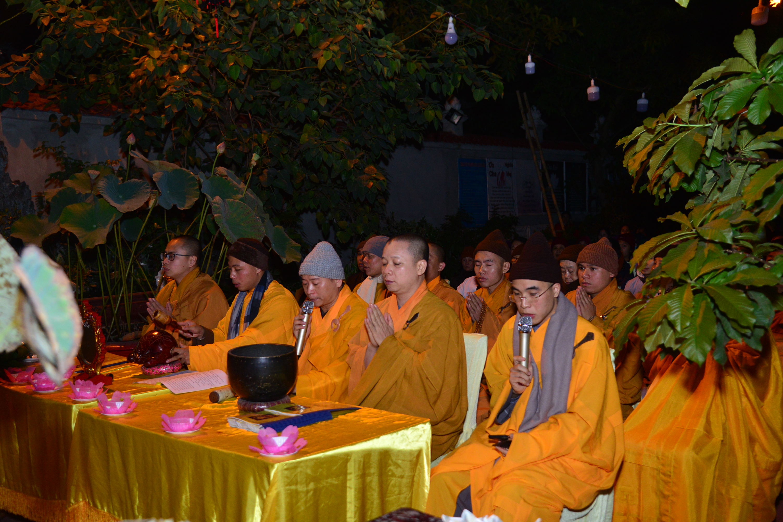 Trước khi kết thúc buổi lễ Chư tôn đức Tăng Ni và quý Phật tử đã trì tụng kinh Phổ Môn cầu nguyện âm siêu, dương khánh, tật bệnh tiêu trừ.