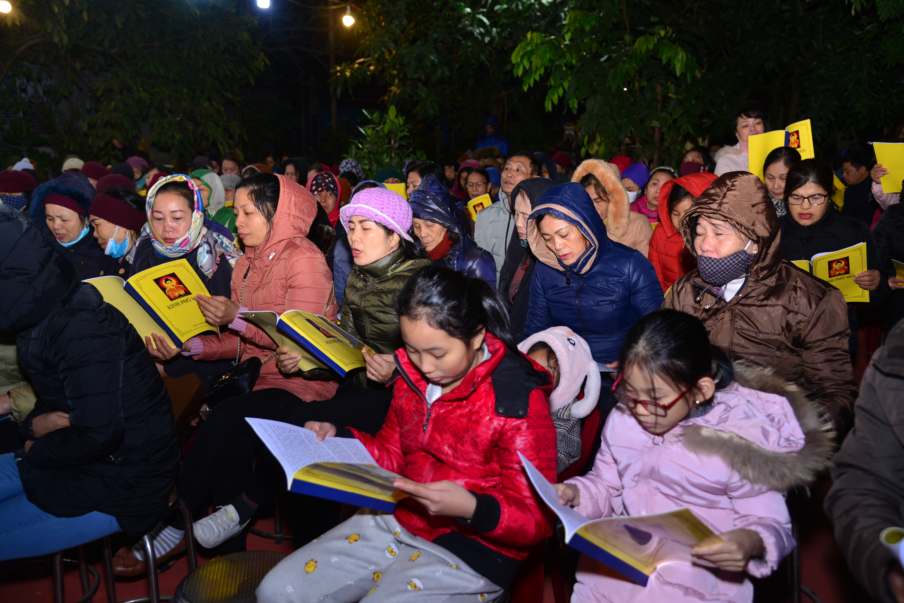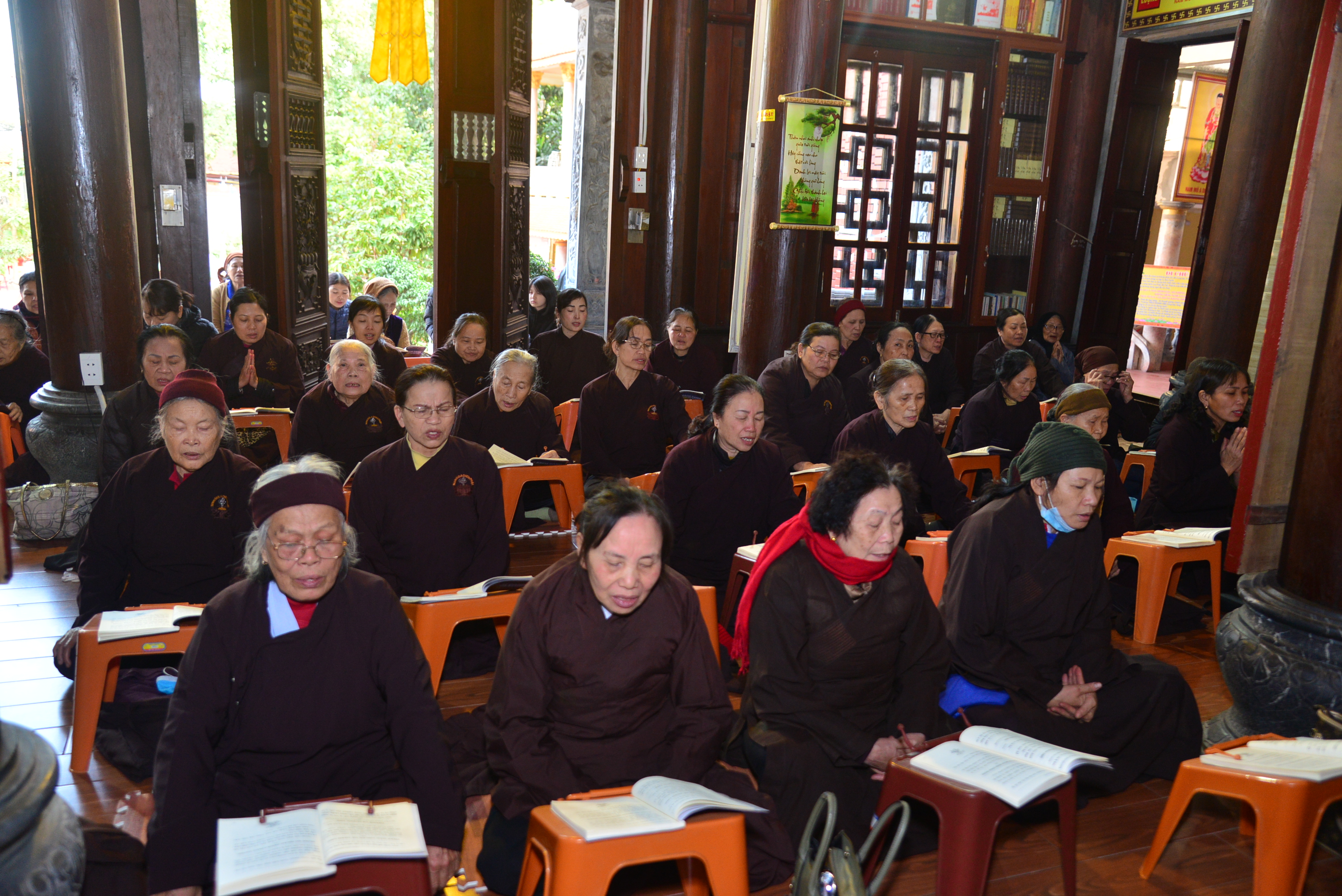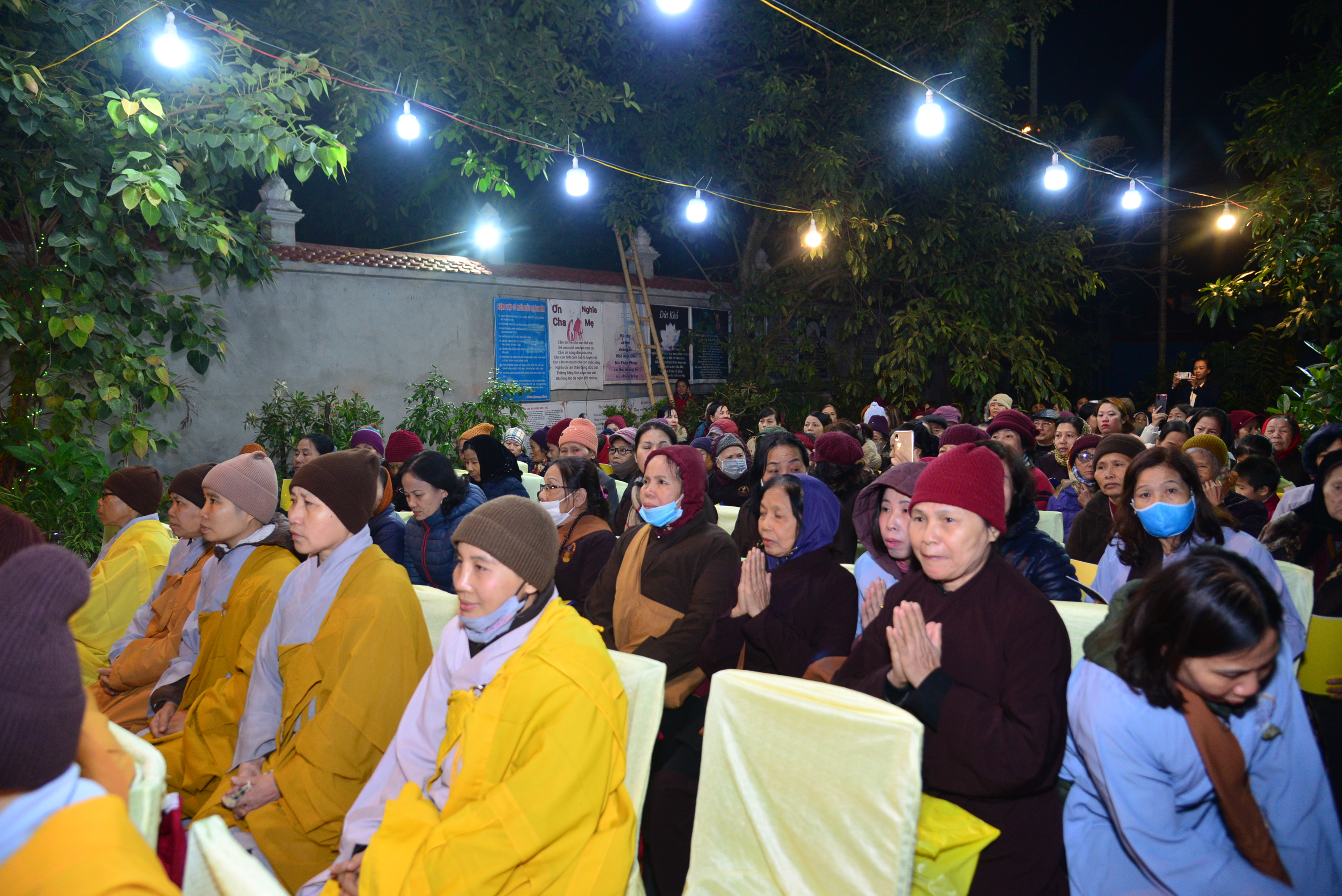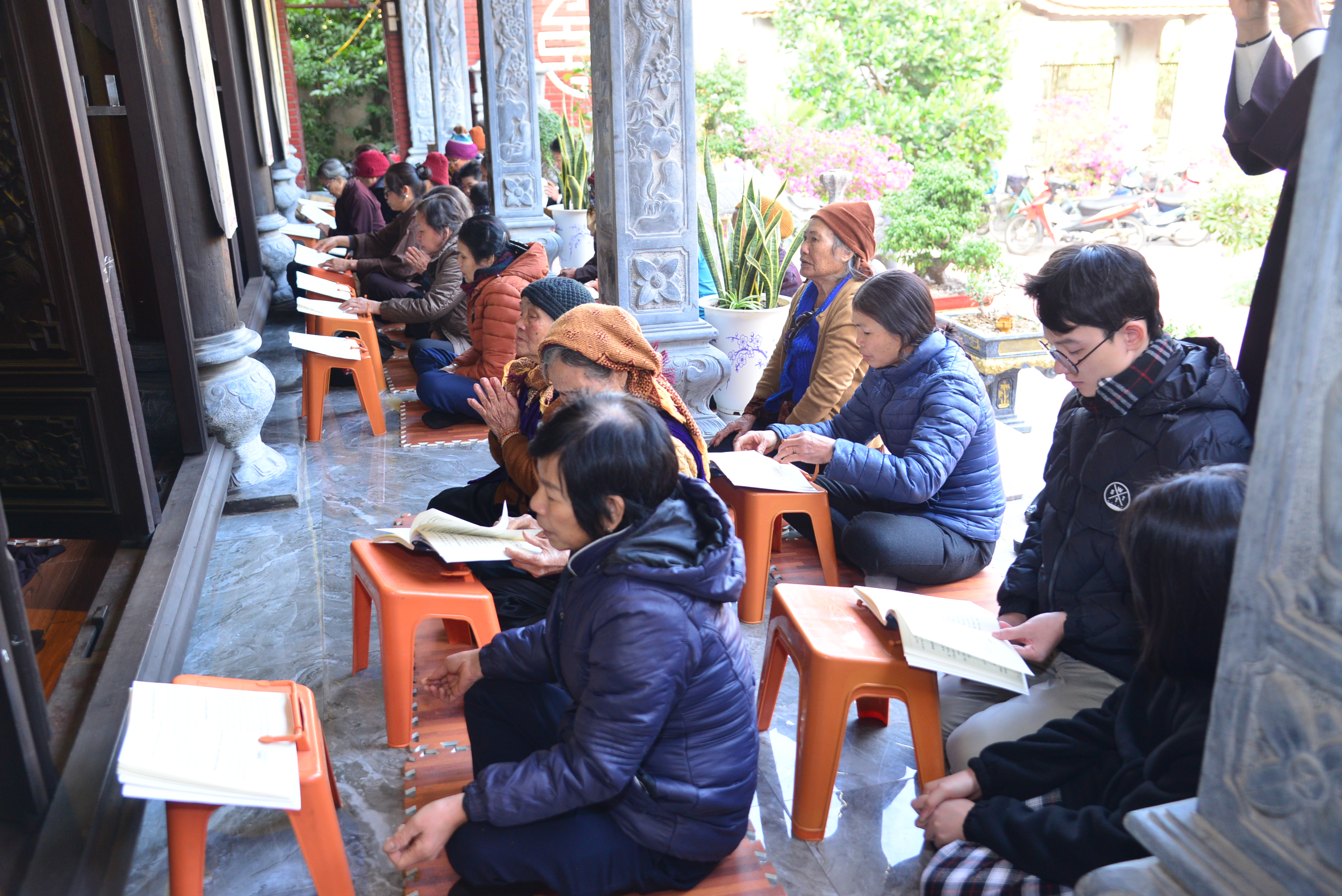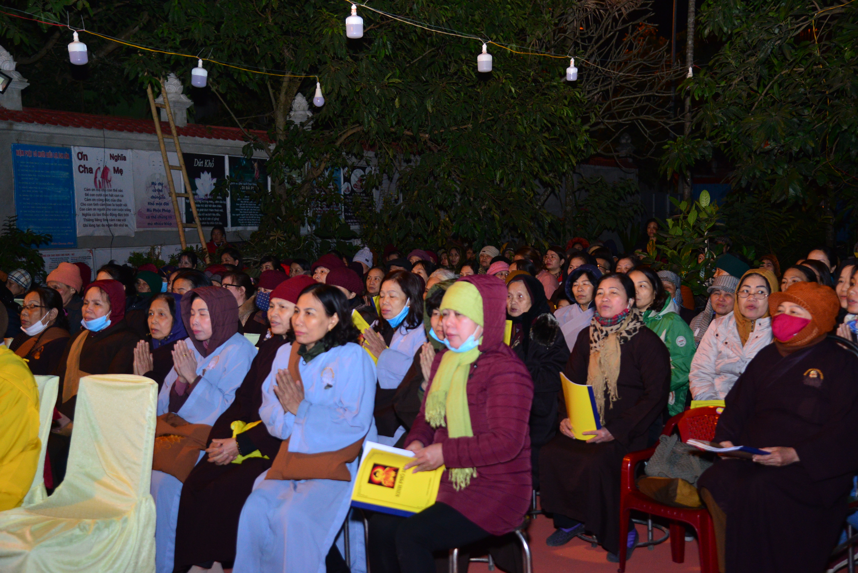 Trước khi kết thúc buổi lễ Chư tôn đức Tăng Ni và quý Phật tử đã trì tụng kinh Phổ Môn cầu nguyện âm siêu, dương khánh, tật bệnh tiêu trừ.