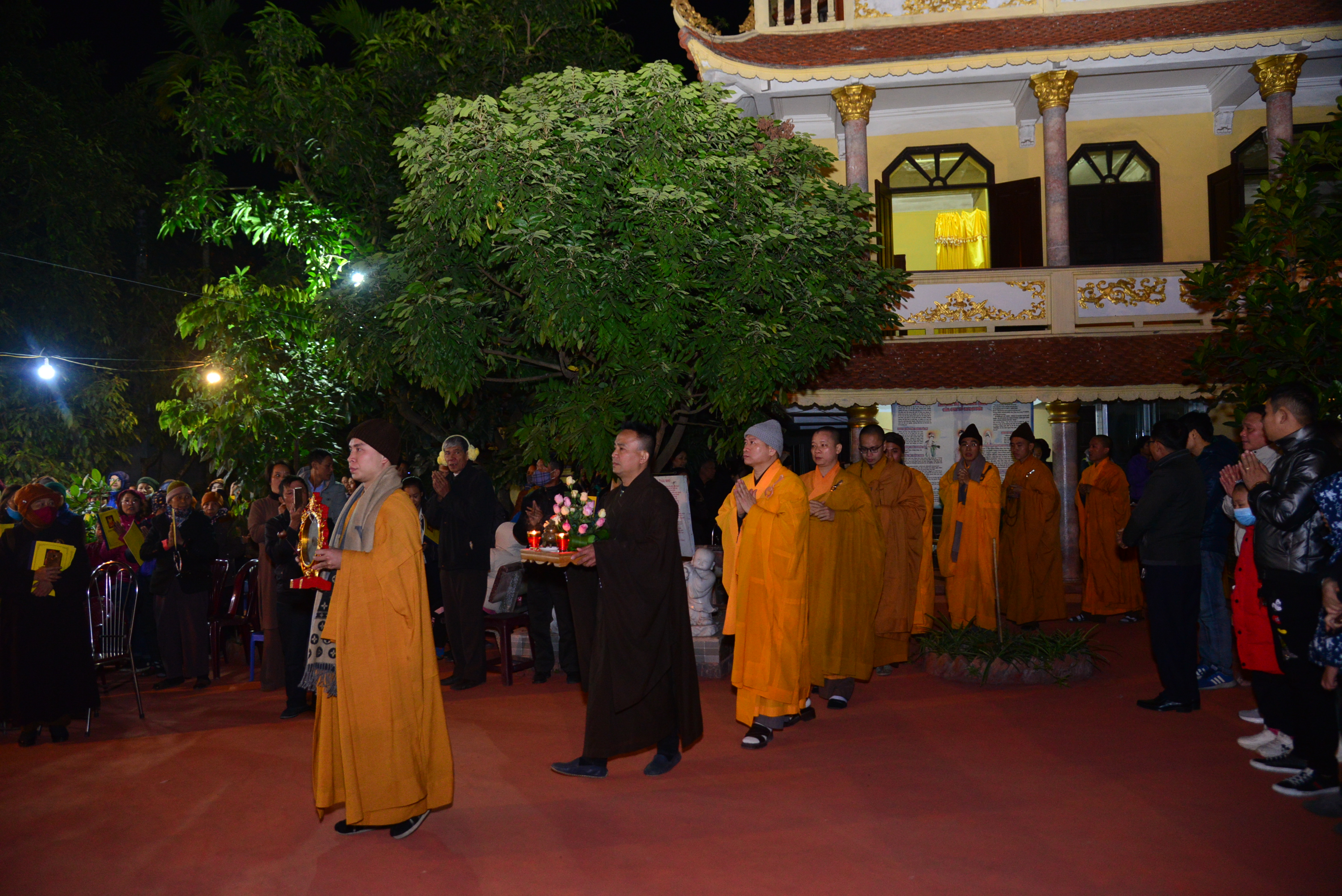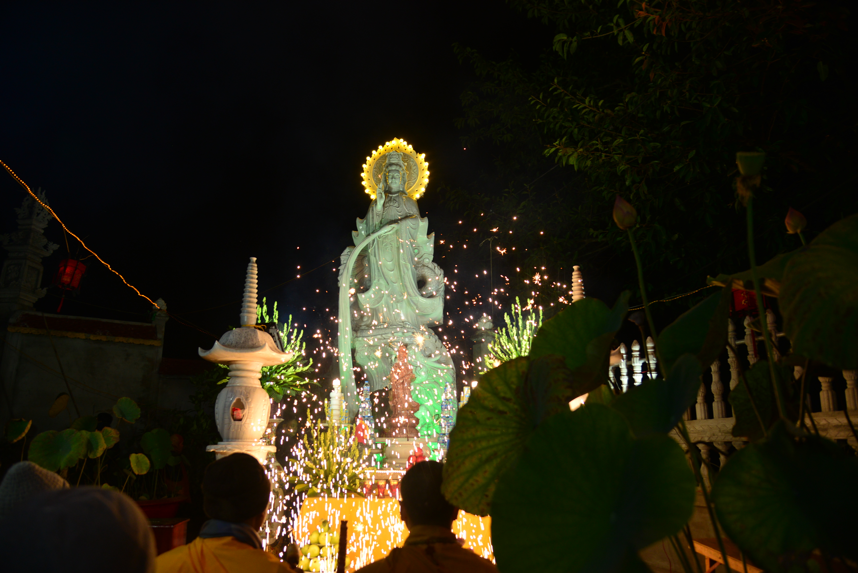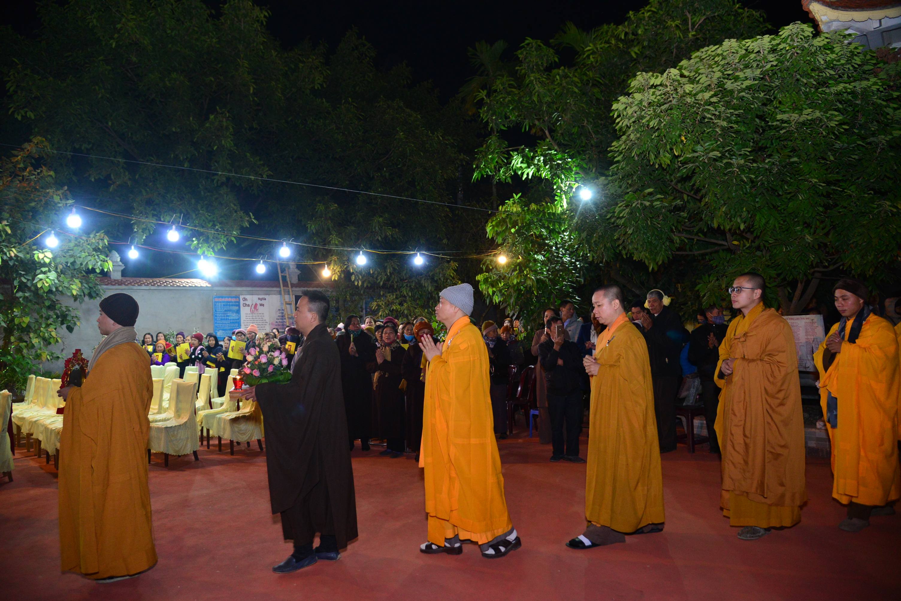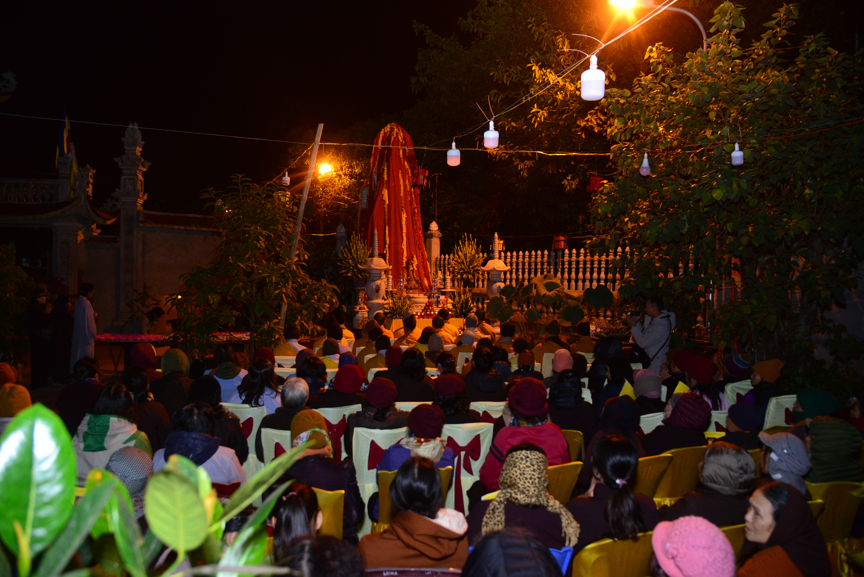 Trong không khí trang nghiêm, thanh tịnh, đối trước thánh tượng của Bồ – tát Quán Thế Âm, chư tôn đức Tăng Ni hiện tiền và quý Phật tử đã cử hành nghi lễ niêm hương, bạch Phật, trì đại bi, thập chú, niệm thánh hiệu Bồ tát – Quán Thế Âm, cầu nguyện thế giới hoà bình, chúng sinh an lạc, Phật pháp trường tồn và lễ khai quang, an vị thánh tượng Bồ tát – Quán Thế Âm.